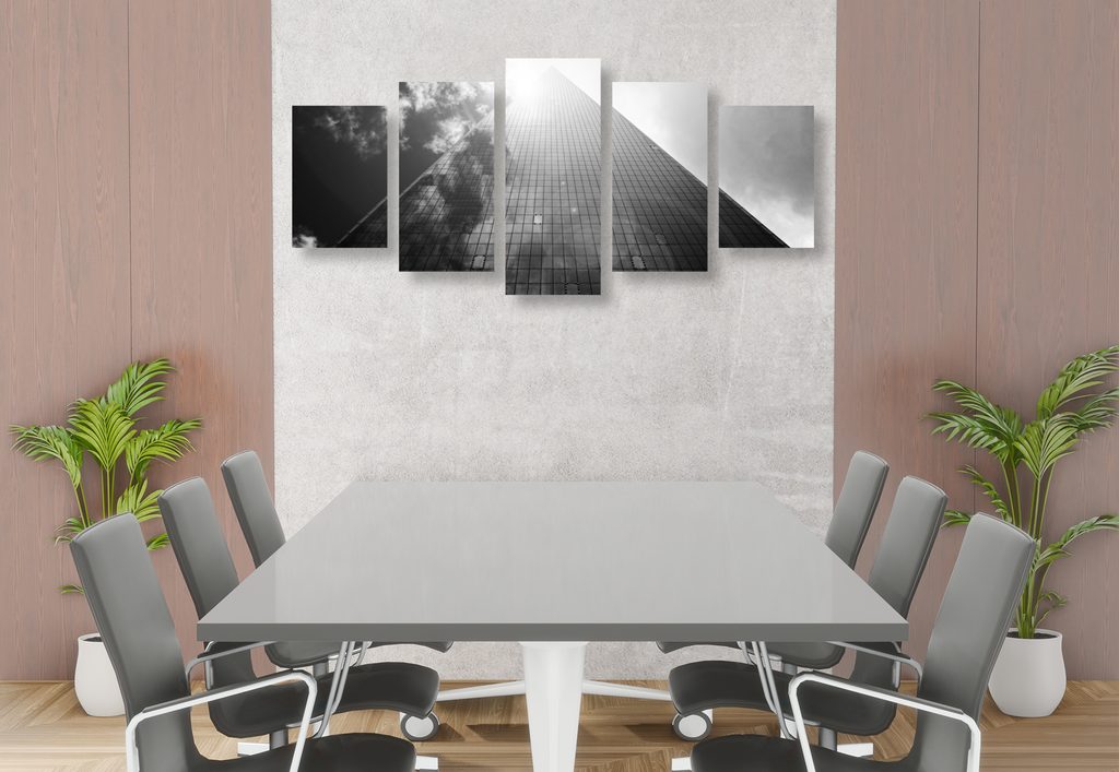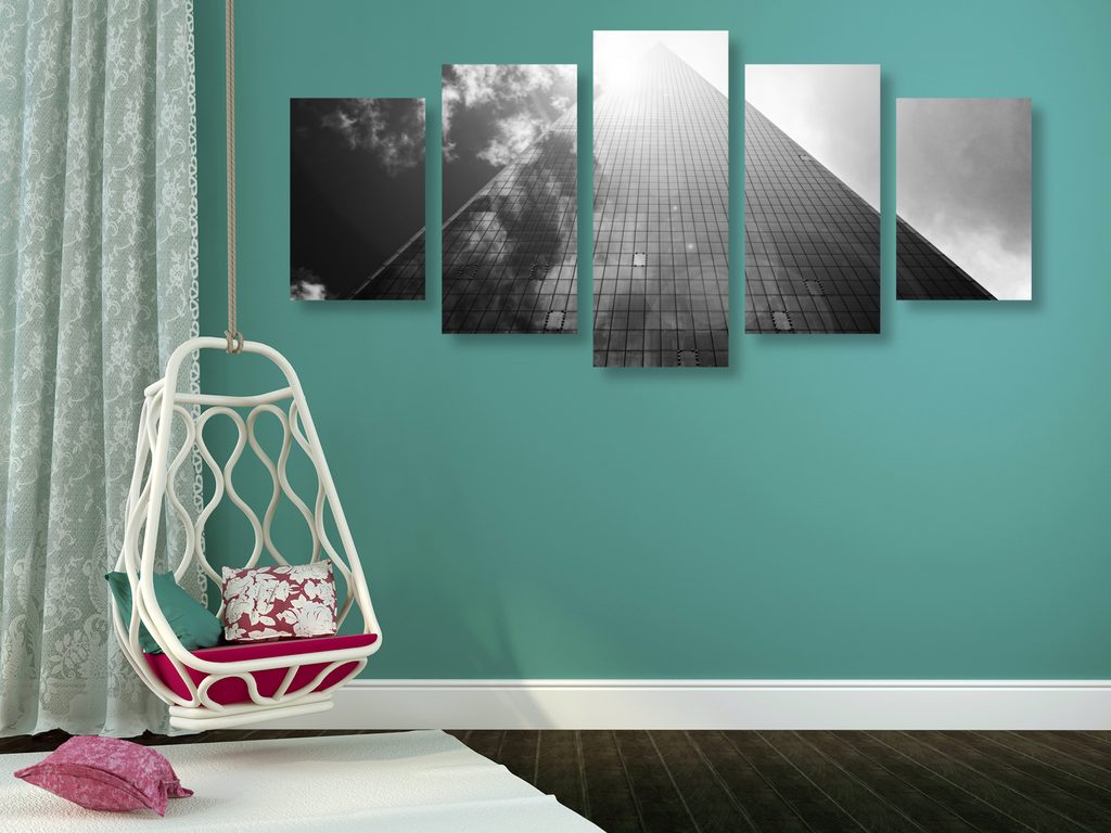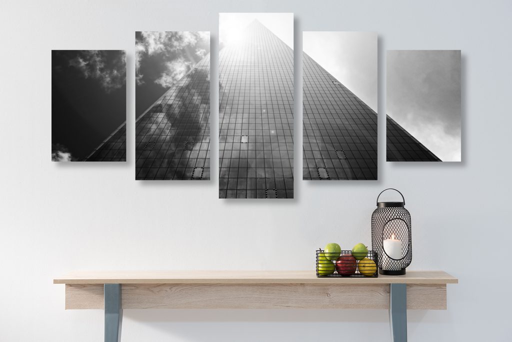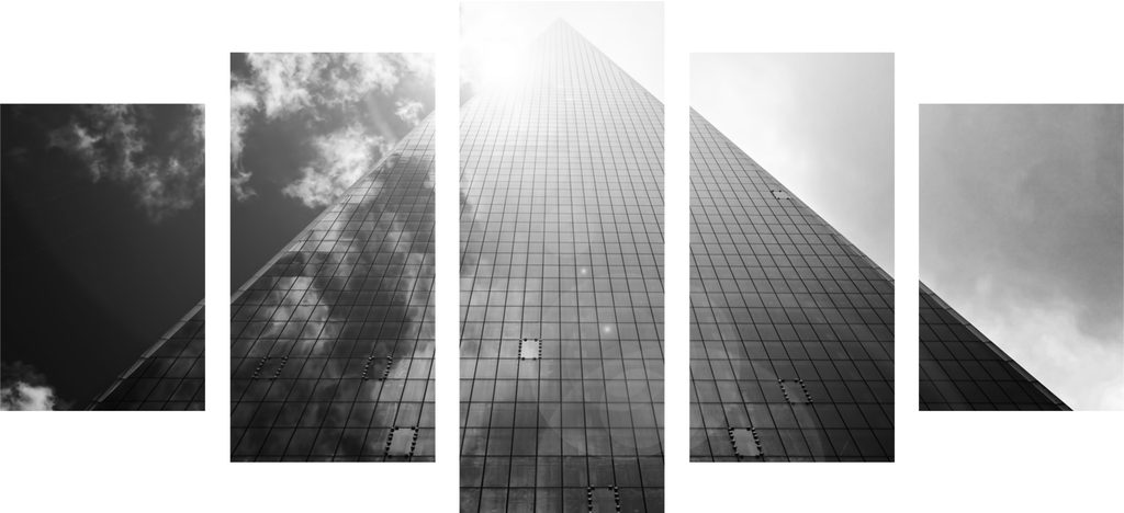 5-dielny obraz krása modernej architektúry v čiernobielom prevedení