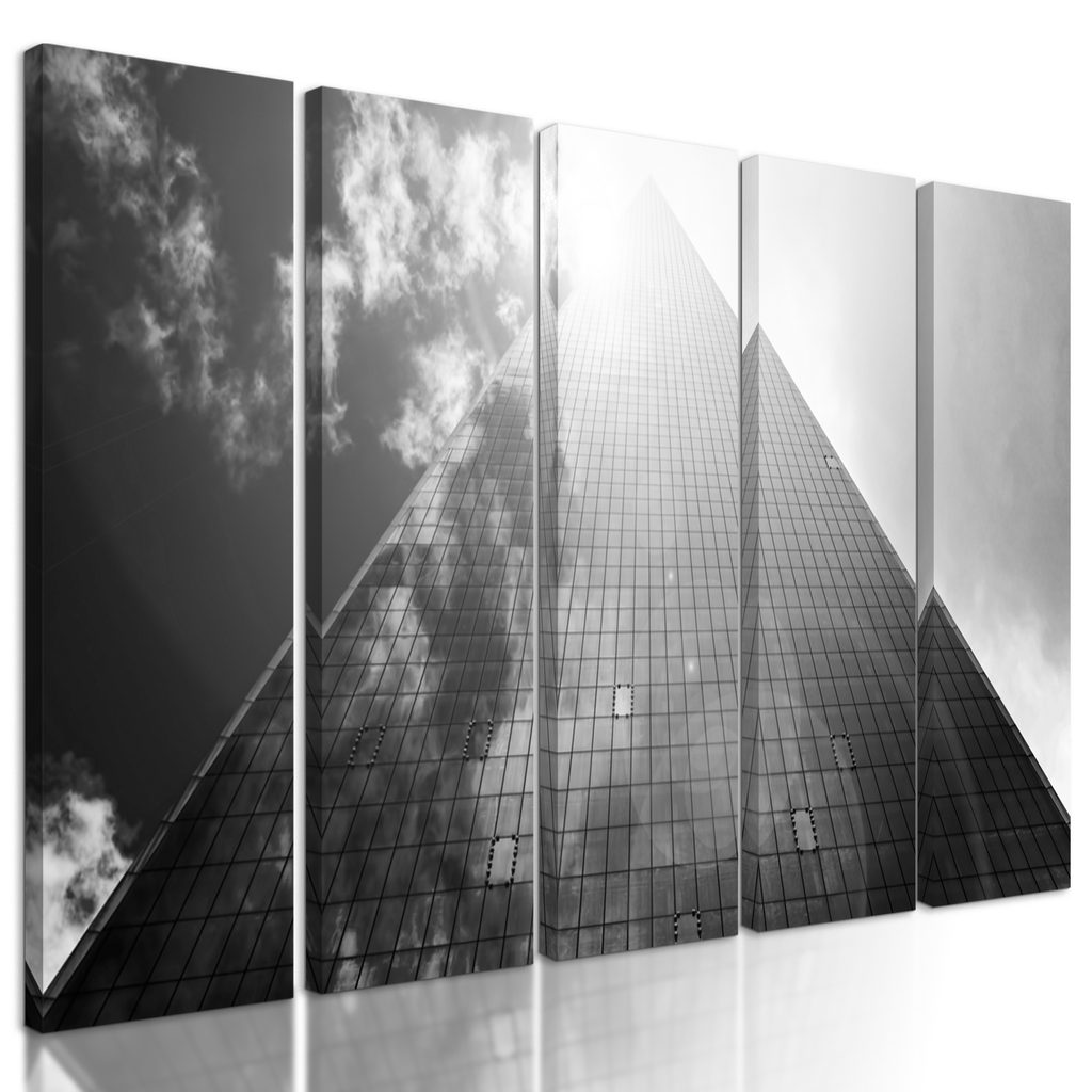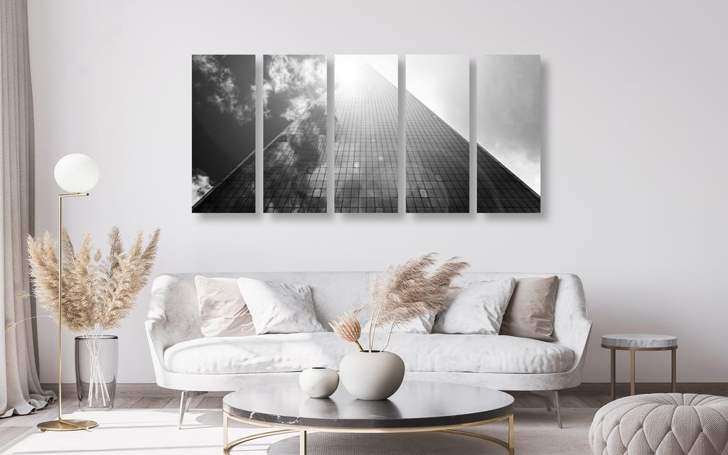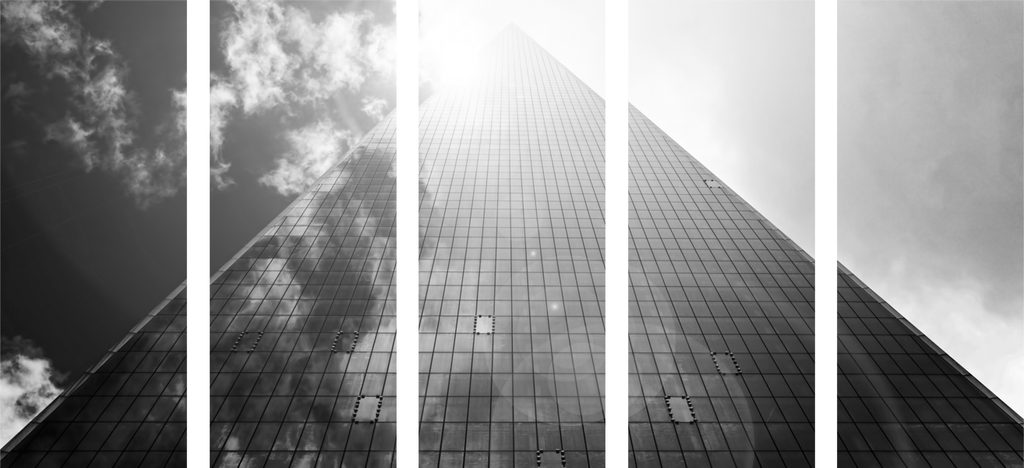 5-dielny obraz krása modernej architektúry v čiernobielom prevedení