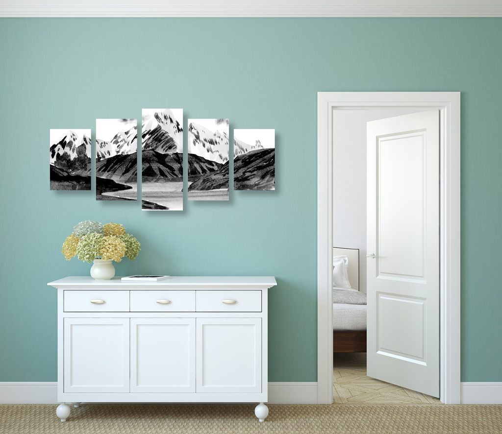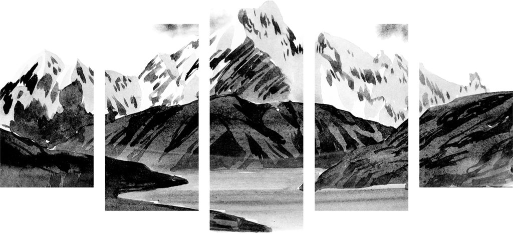 5-dielny obraz krása nedotknutej prírody v čiernobielom prevedení