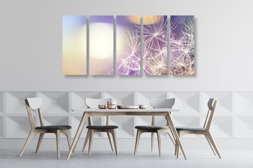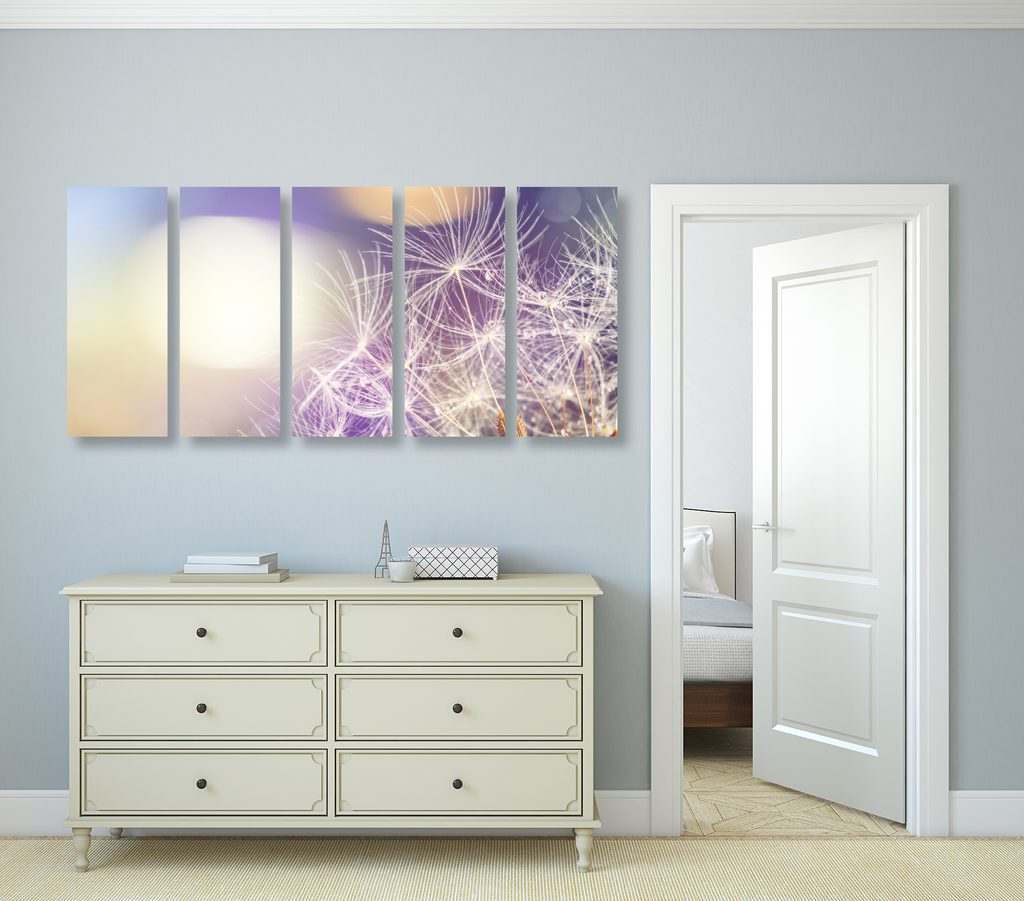 5-dielny obraz krása rozkvitnutej púpavy v zaujímavom prevedení