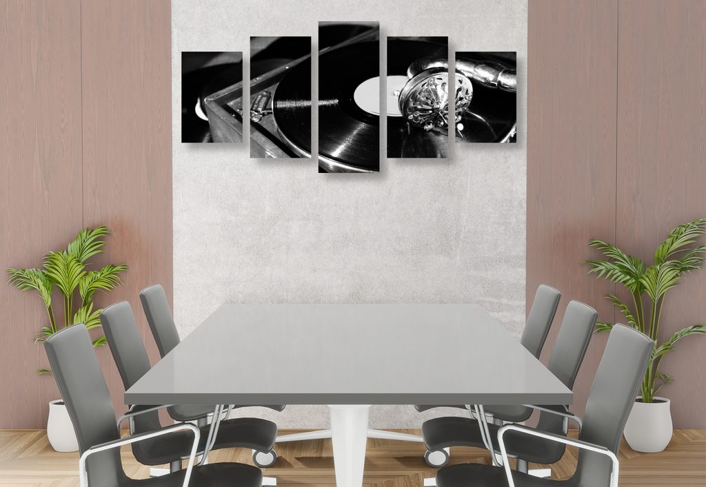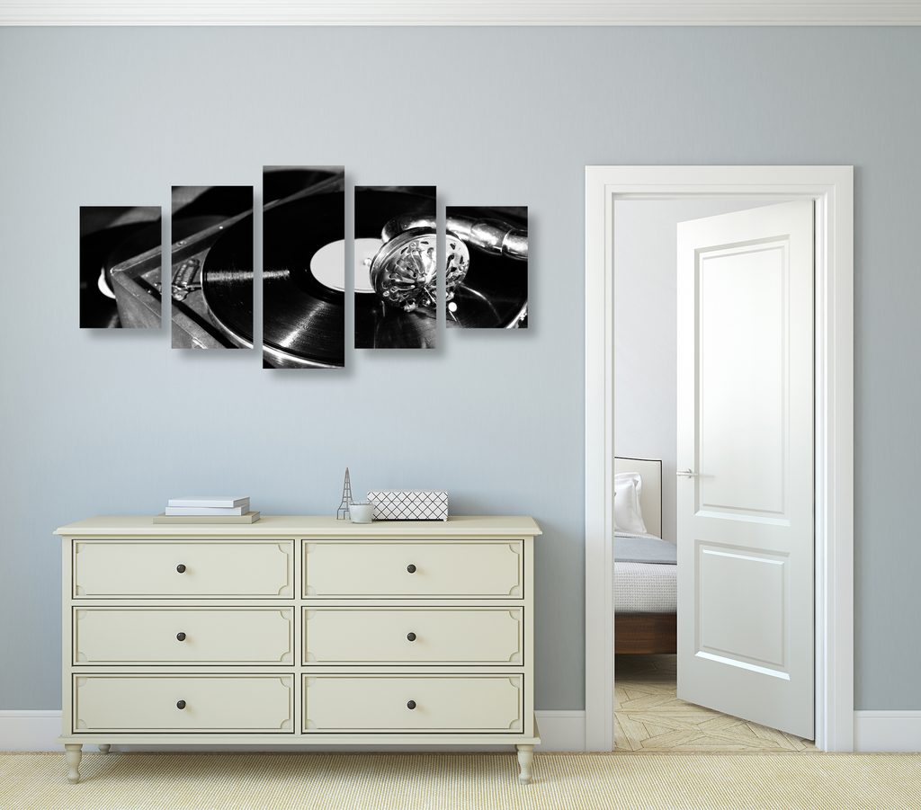 5-dielny obraz krása vinylovej platne v čiernobielom prevedení