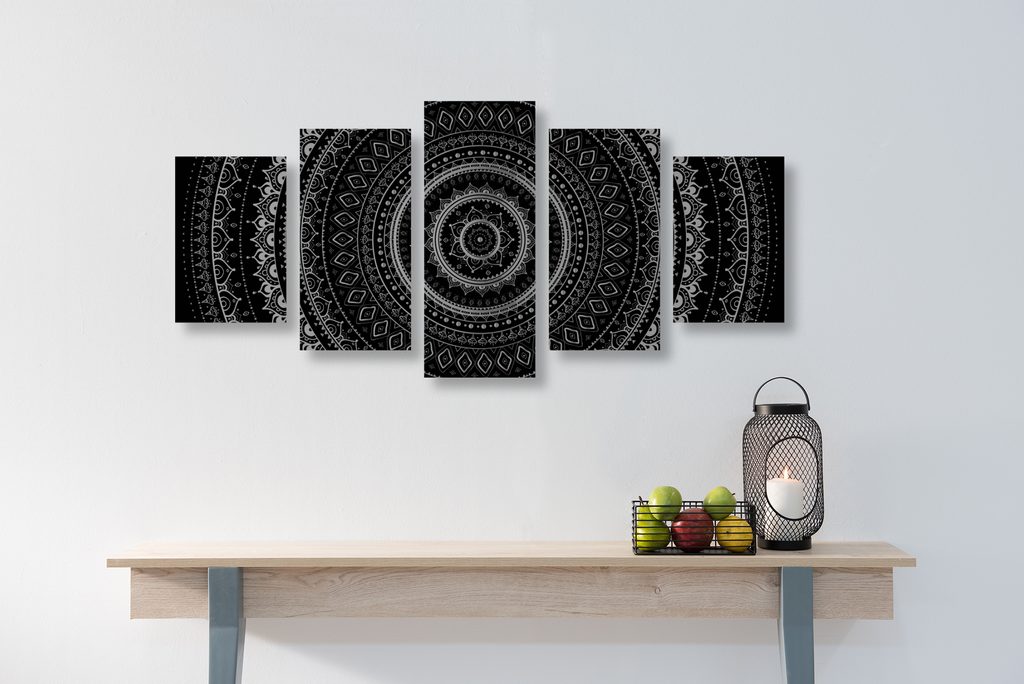 5-dielny obraz krásna čiernobiela Mandala