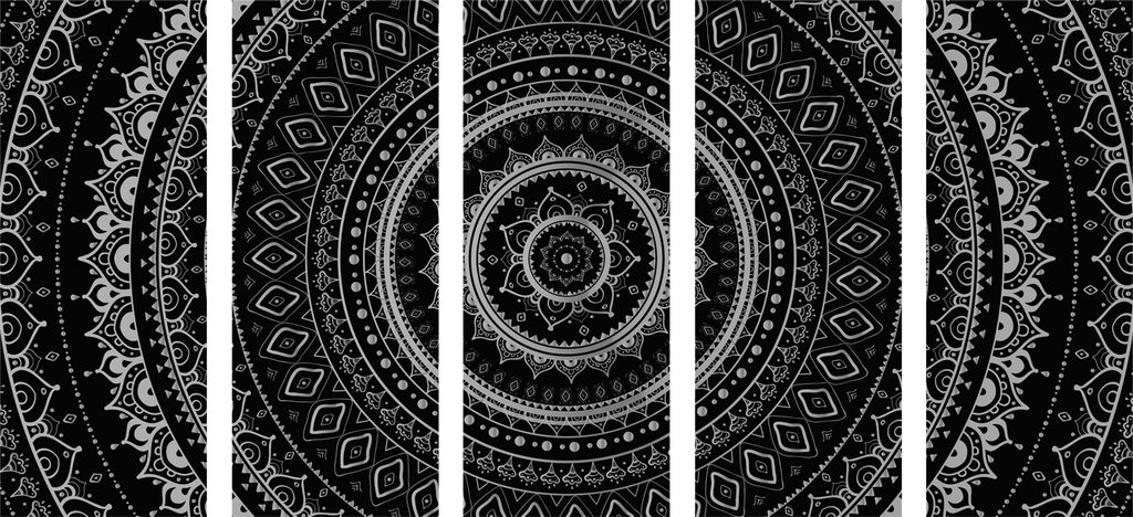 5-dielny obraz krásna čiernobiela Mandala