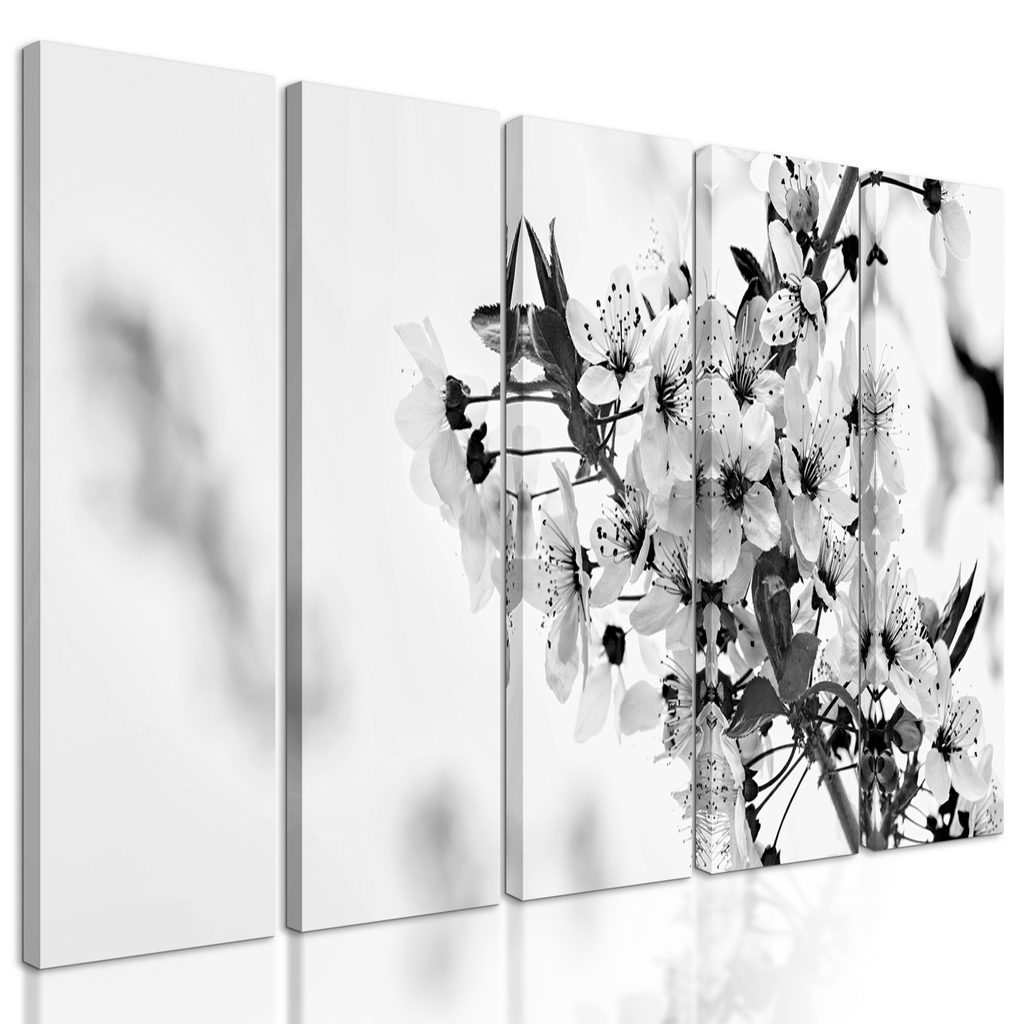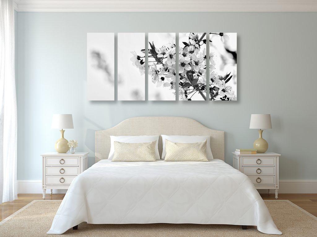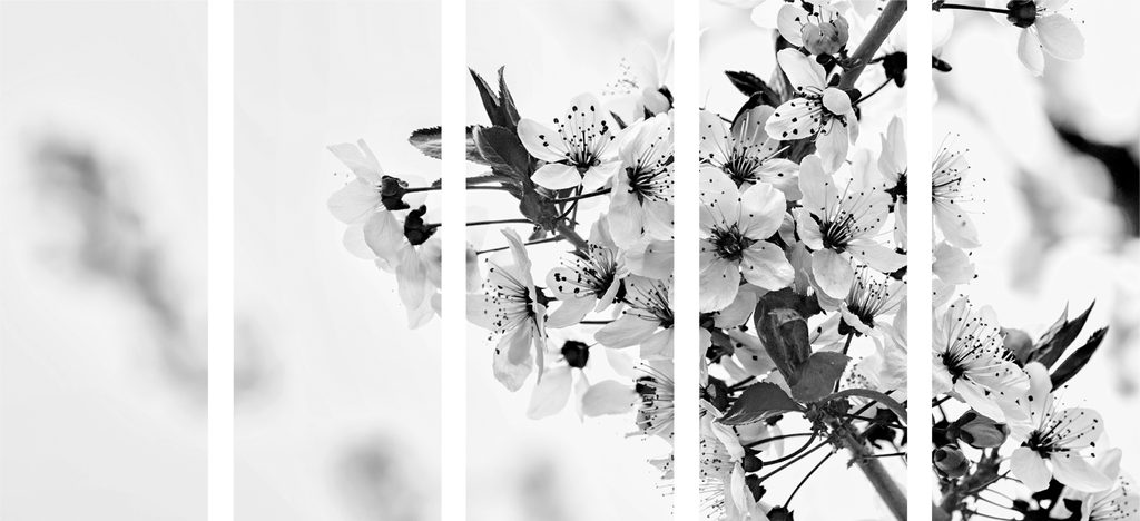 5-dielny obraz krásne kvety v čiernobielom prevedení
