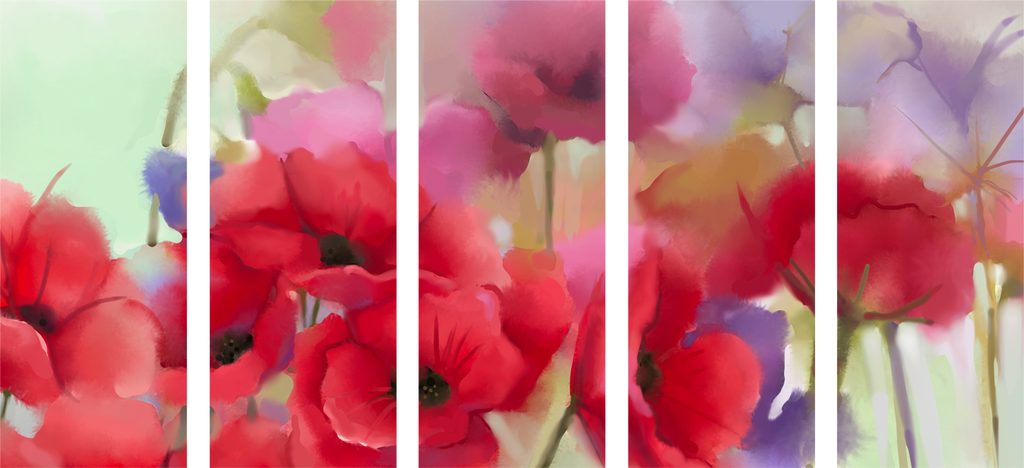 5-dielny obraz krásne maľované maky