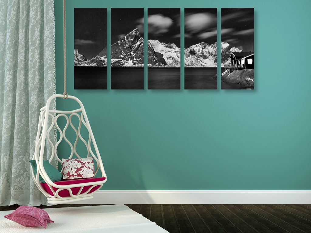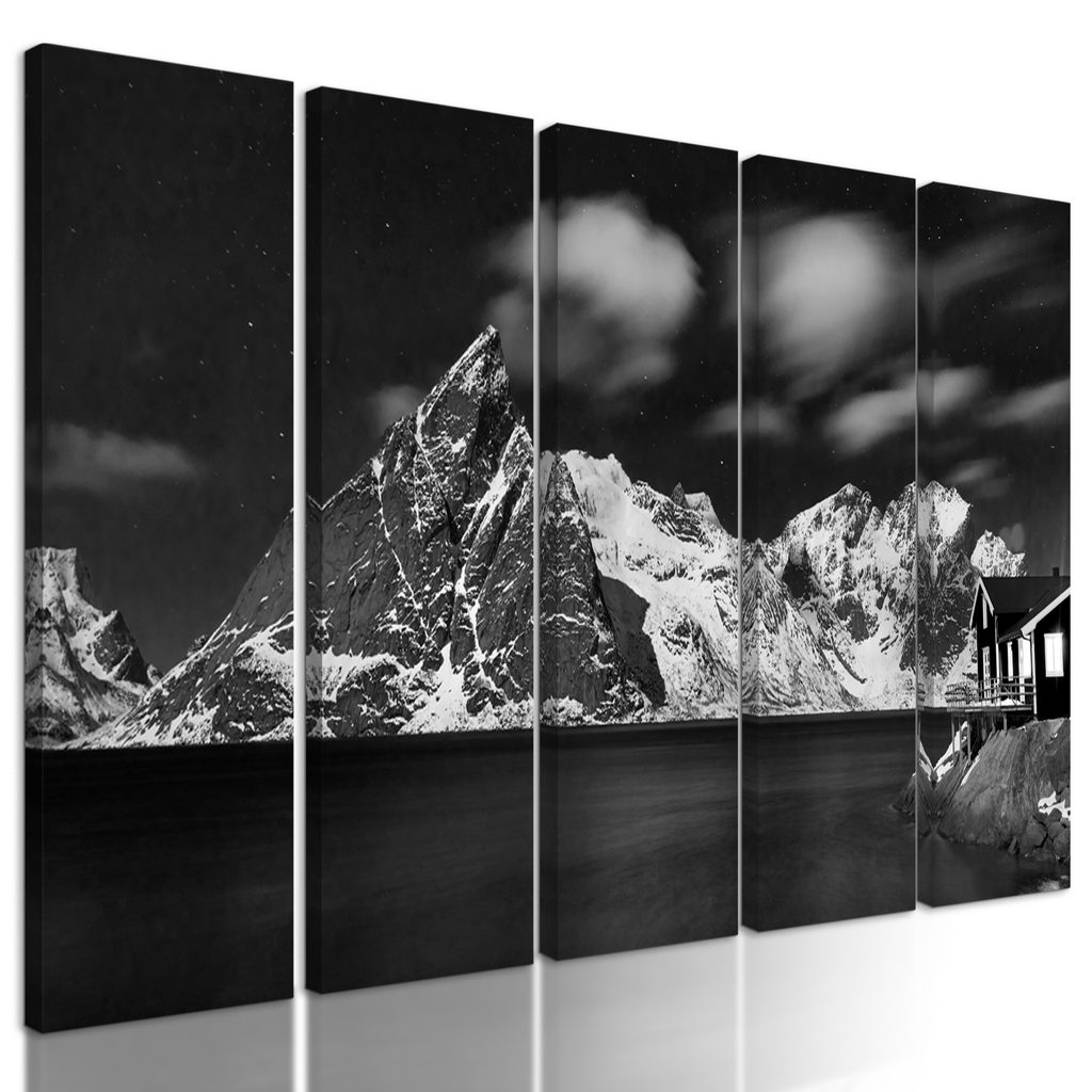 5-dielny obraz krásne Norsko v čiernobielom prevedení