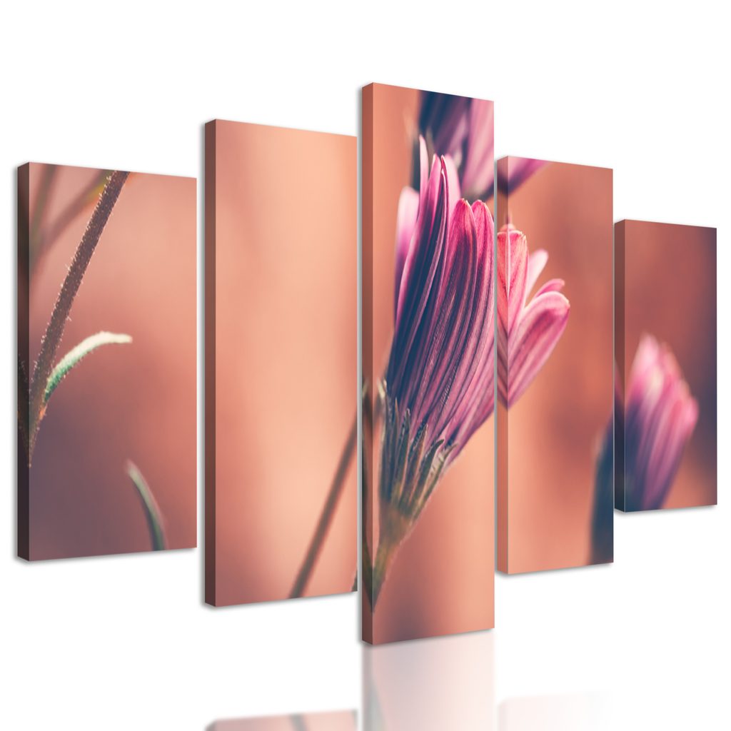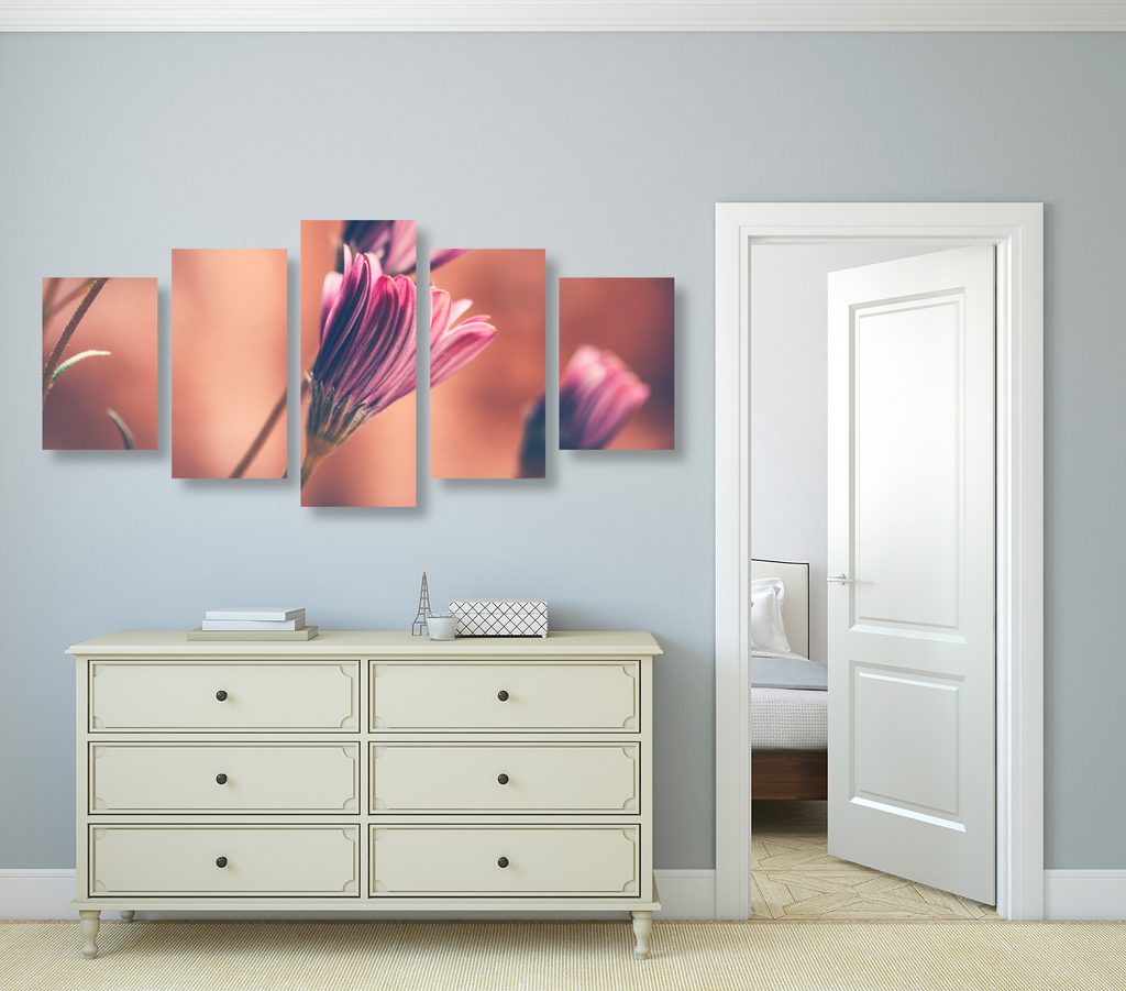 5-dielny obraz fialová orchidea v čiernobielom prevedení