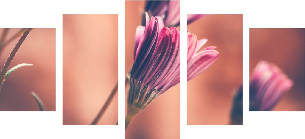 5-dielny obraz malé ružičky v sépiovom prevedení