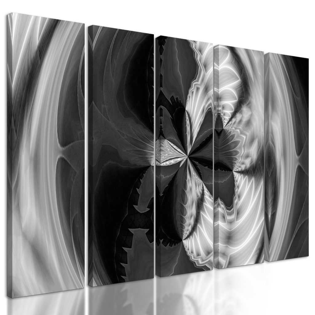 5-dielny obraz krásy abstraktných tvarov v čiernobielom prevedení
