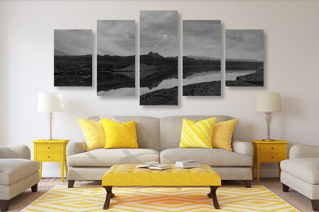 5-dielny obraz krásy prírody v čiernobielom prevedení