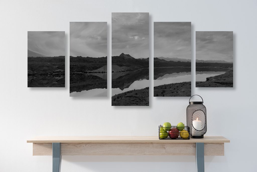 5-dielny obraz krása nedotknutej prírody v čiernobielom prevedení