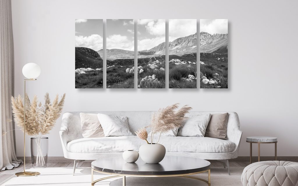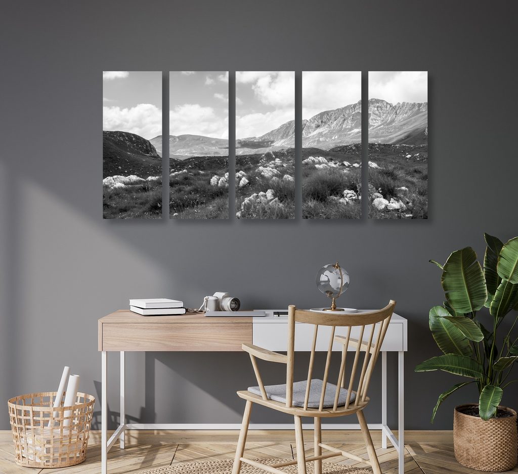 5-dielny obraz krásy prírody v čiernobielom prevedení