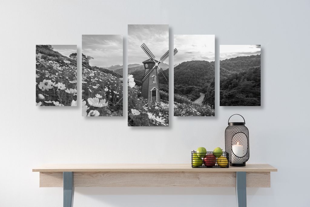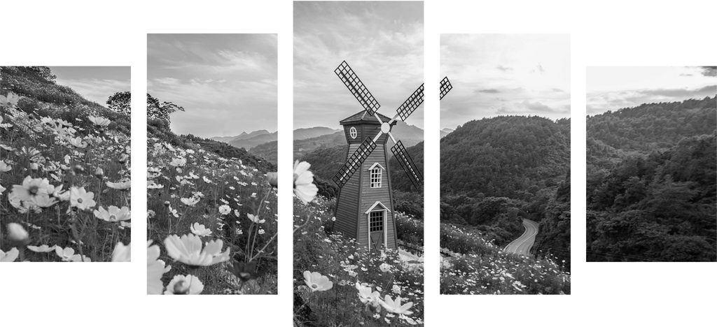 5-dielny obraz kúzelná krajina v čiernobielom prevedení