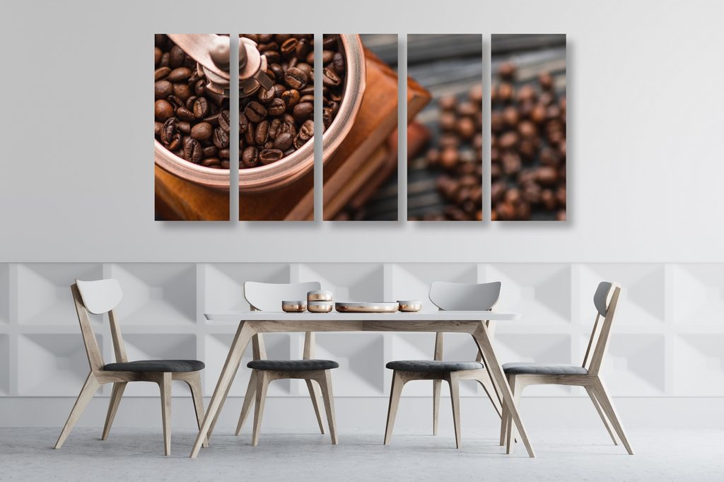 5-dielny obraz kvalitné zrnká kávy