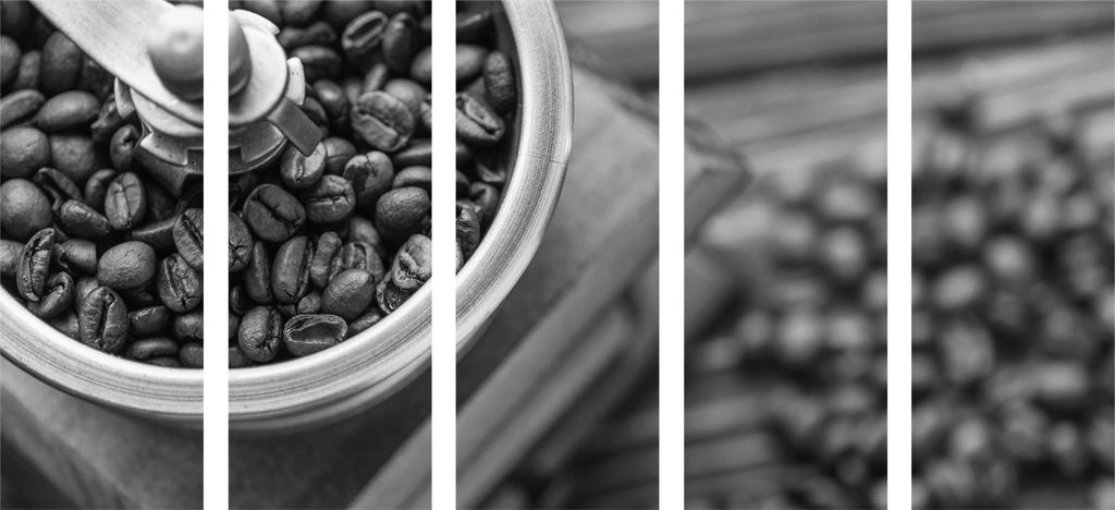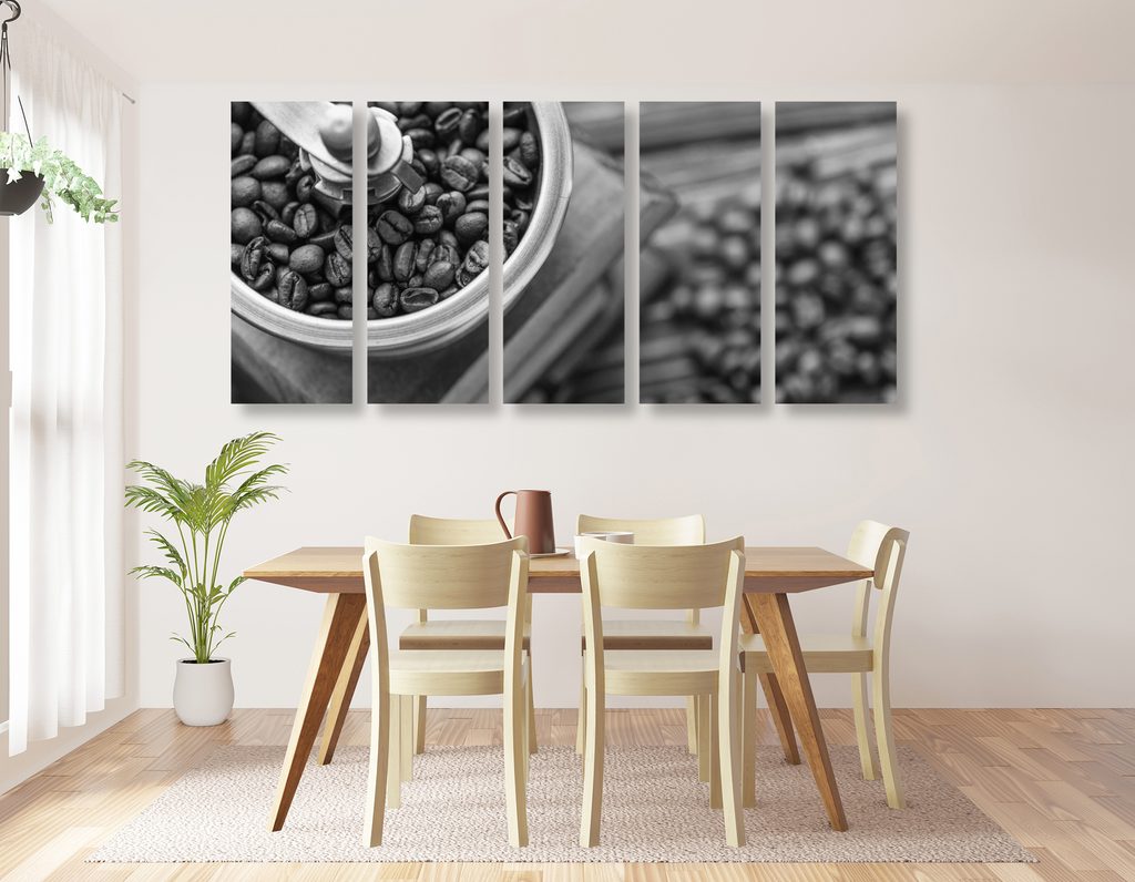 5-dielny obraz kvalitné zrnká kávy v čiernobielom prevedení