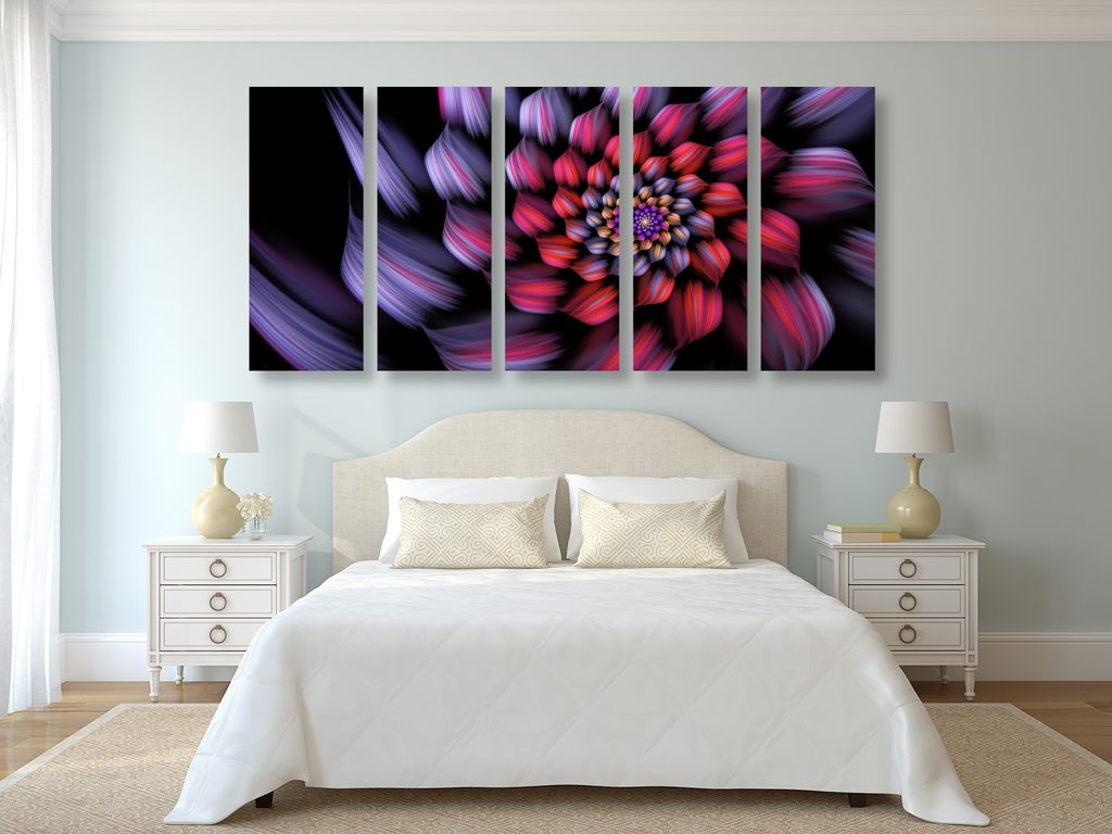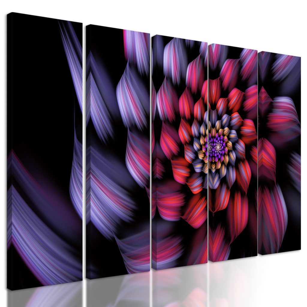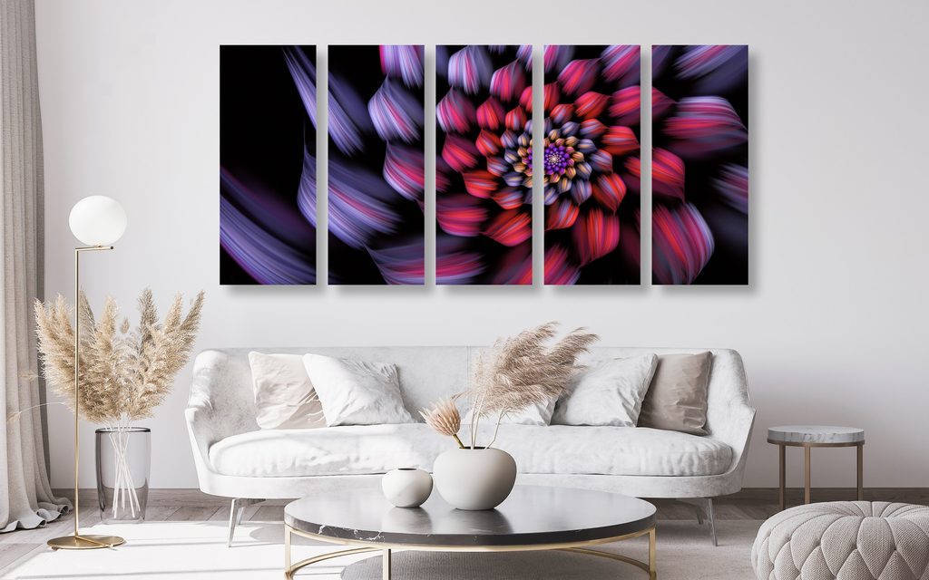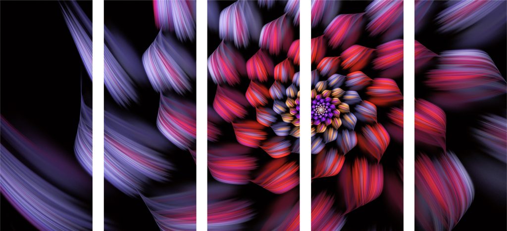 5-dielny obraz kvety v abstraktnom neónovom prevedení