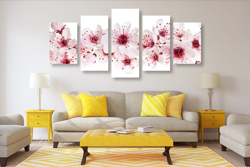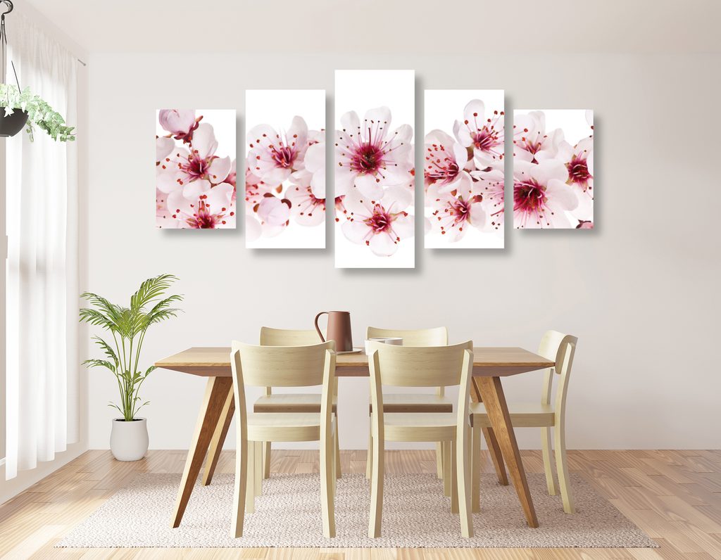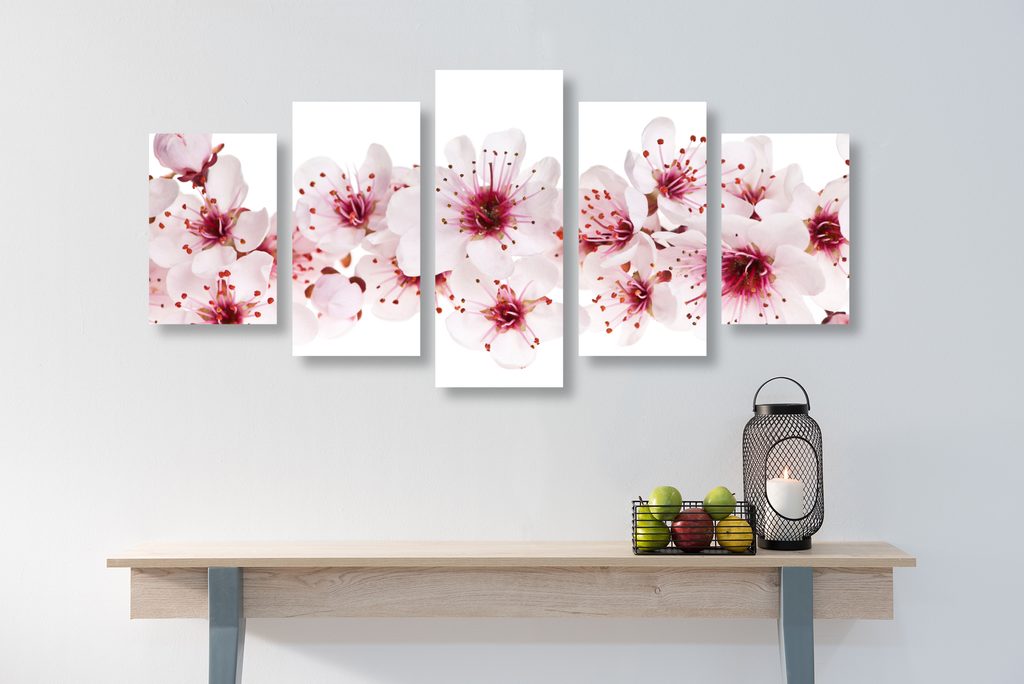 5-dielny obraz kvety čerešne na bielom pozadí