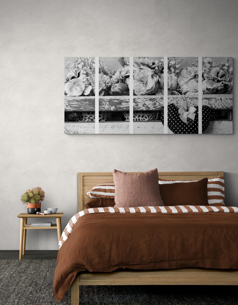 5-dielny obraz kvet v čiernobielom ráme