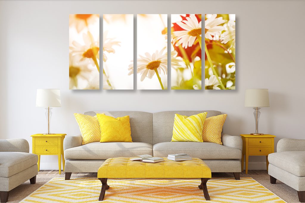5-dielny obraz lúka sedmokrások v žiare slnka