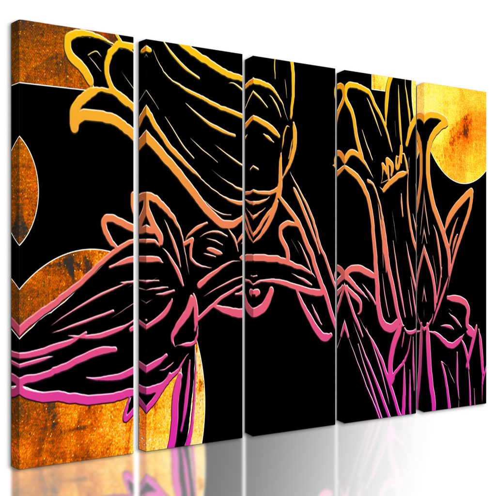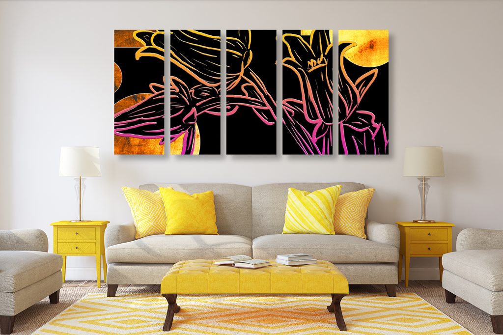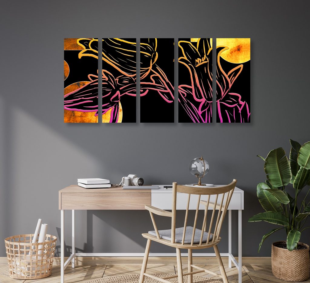 5-dielny obraz kvety v abstraktnom neónovom prevedení