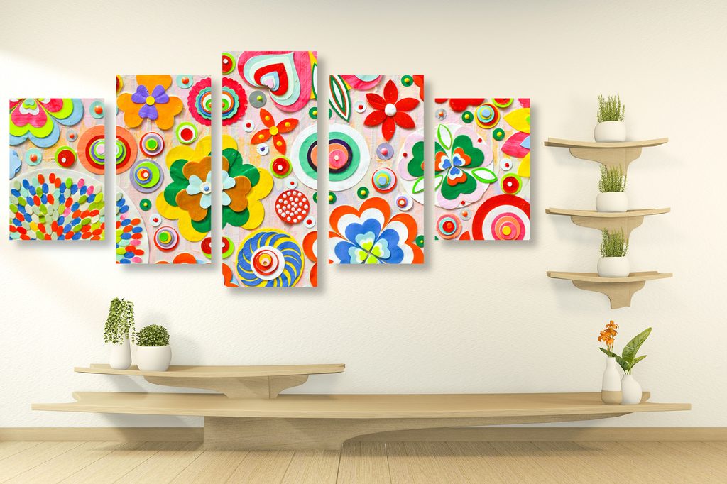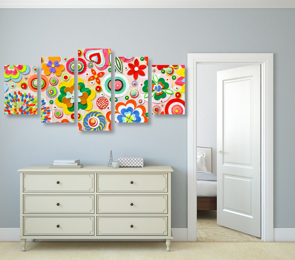 5-dielny obraz olejomaľba kvetov v pastelových odtieňoch