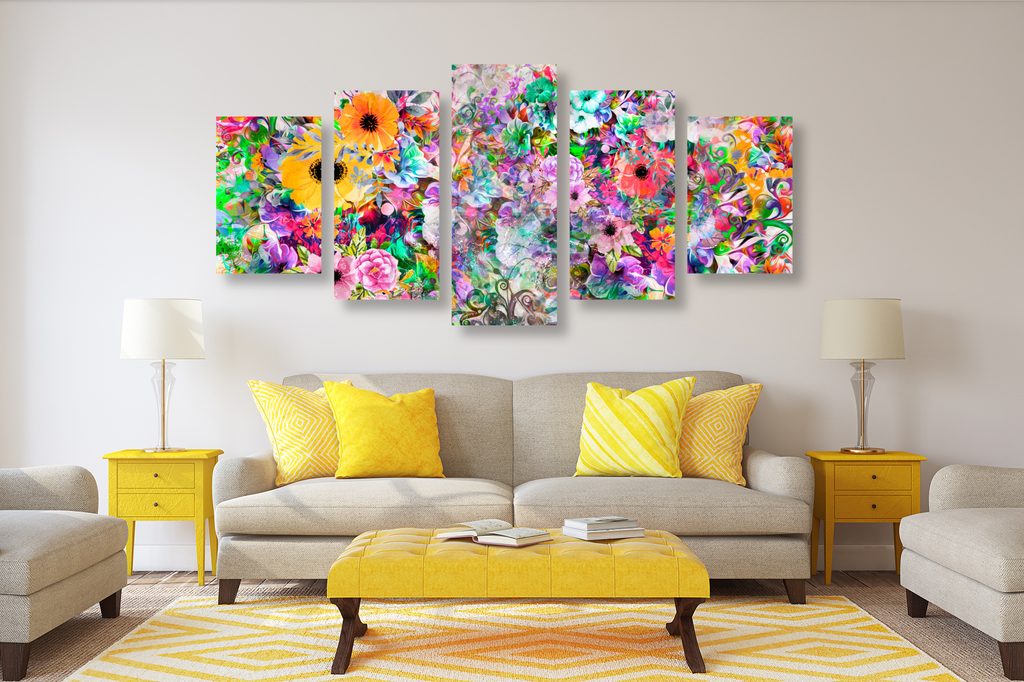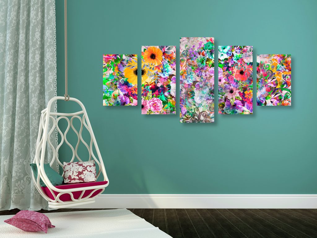 5-dielny obraz olejomaľba lúky plnej kvetov