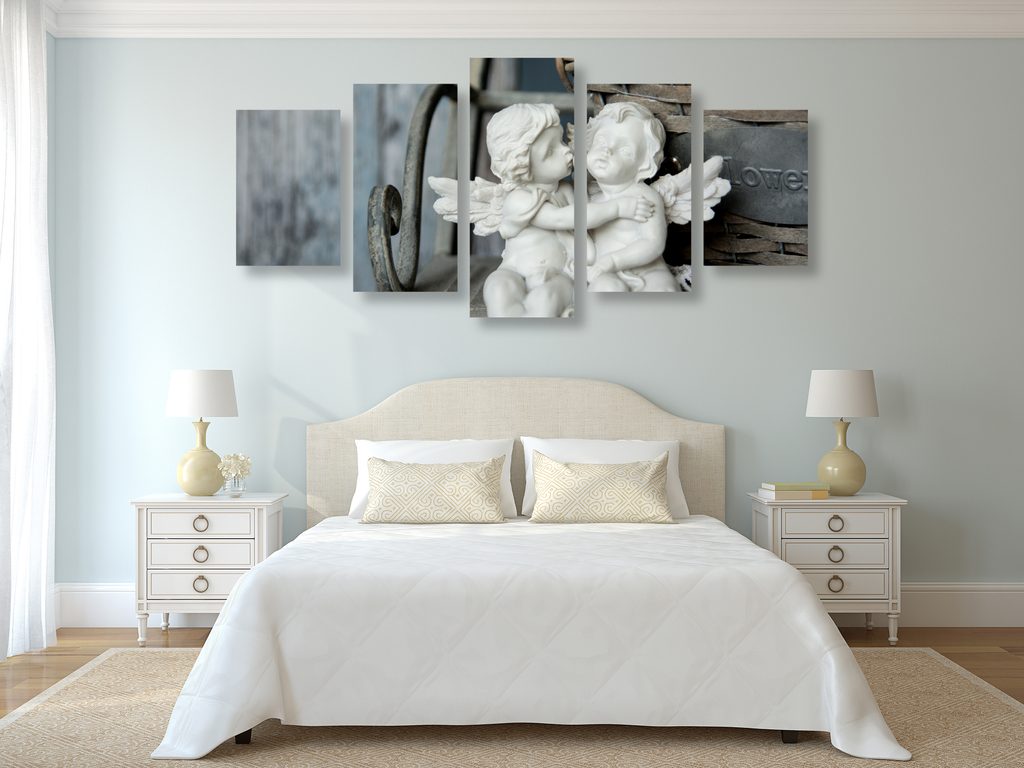5-dielny obraz láska anjelikov v čiernobielom prevedení