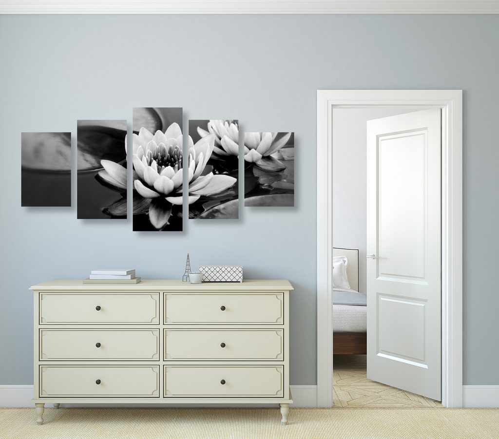 5-dielny obraz lekno v čiernobielom prevedení