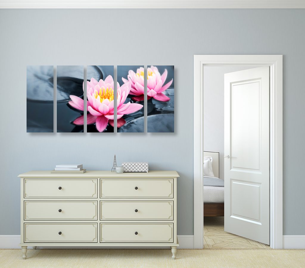 5-dielny obraz luxusné kvety na bronzovom pozadí