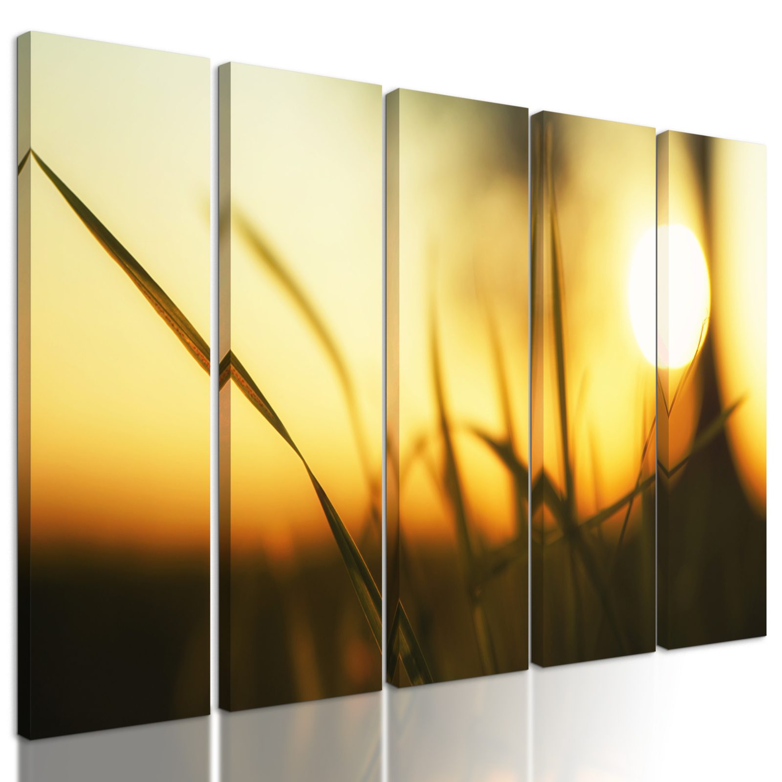 5-dielny obraz západ slnka za steblami trávy