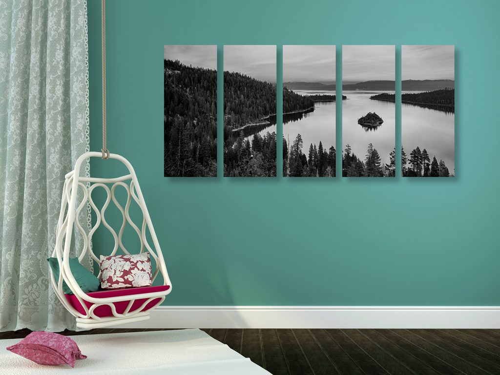 5-dielny obraz krásy prírody v čiernobielom prevedení