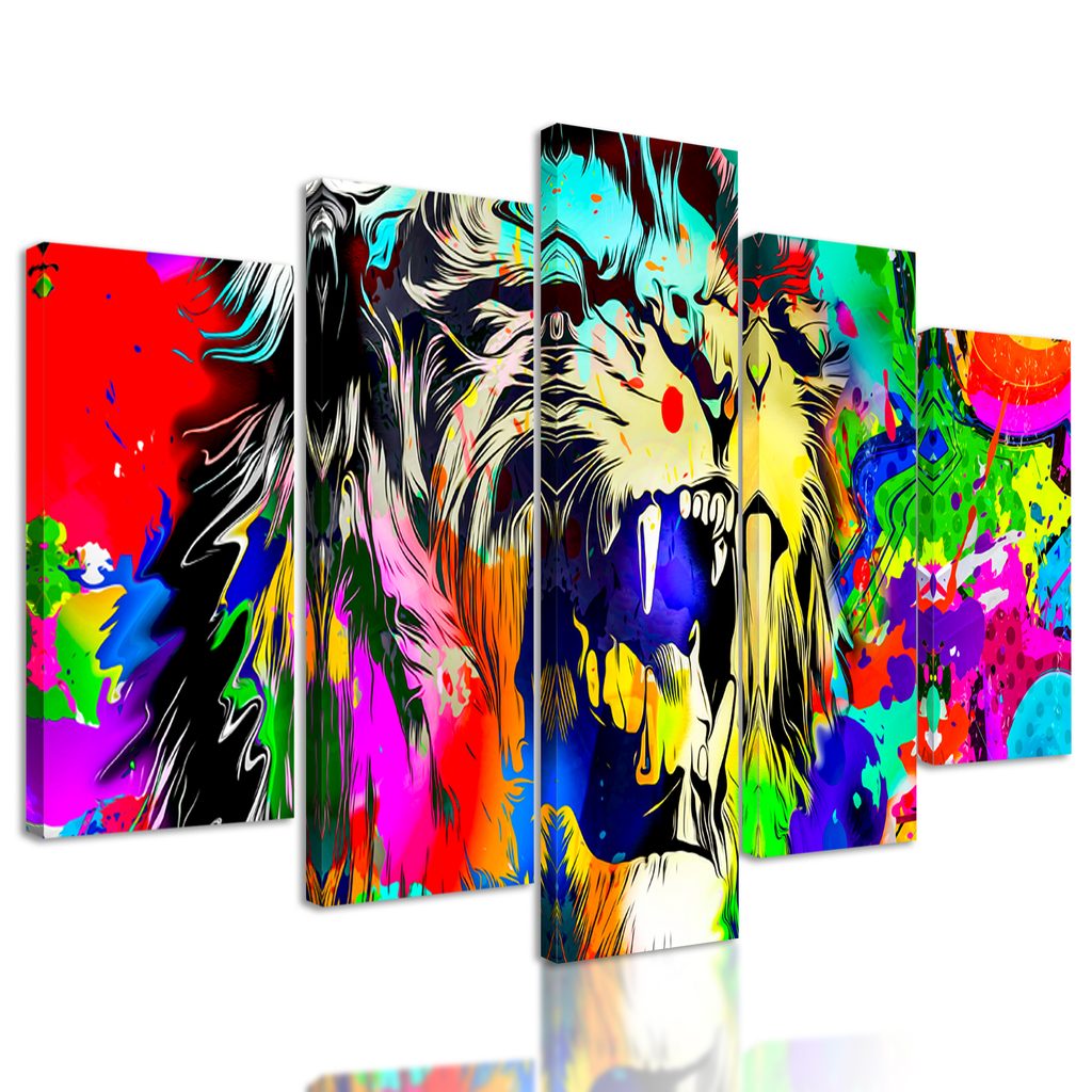 5-dielny obraz levia hlava v štýle pop art