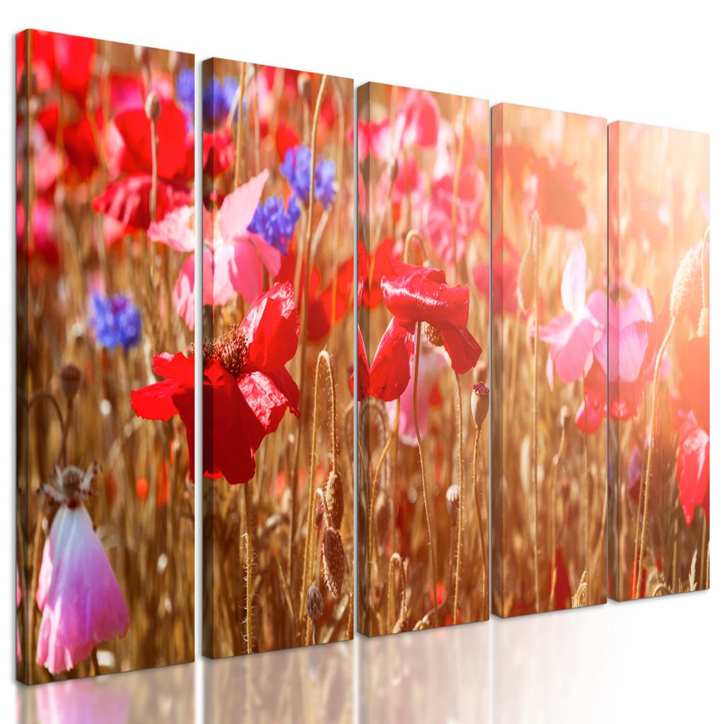 5-dielny obraz lúčne maky na slnečnej lúke