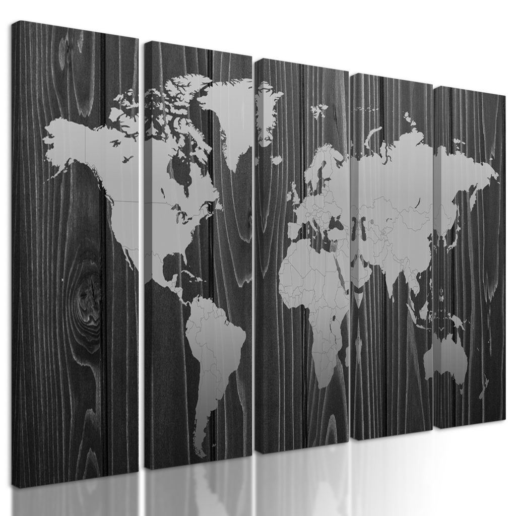 5-dielny obraz luxusná mapa sveta v čiernobielom prevedení