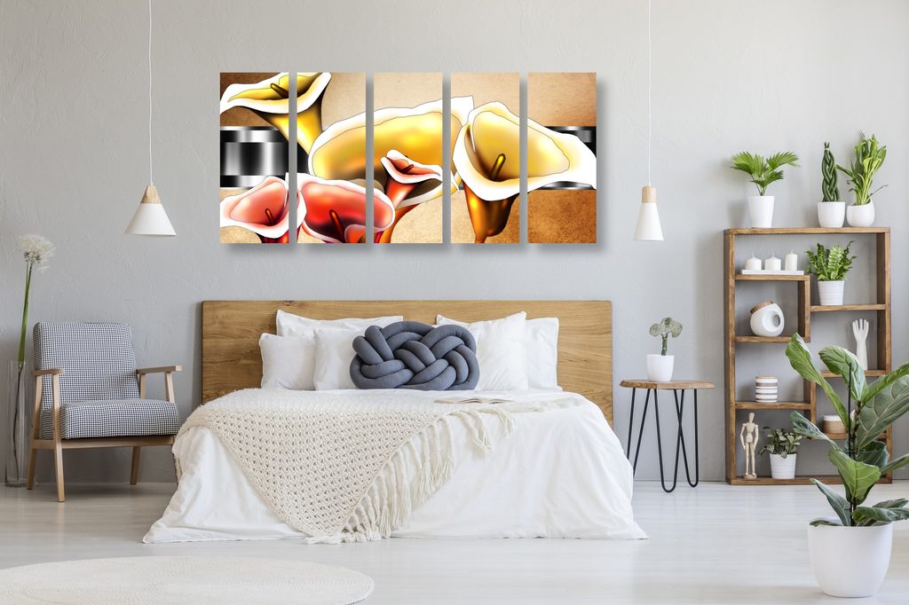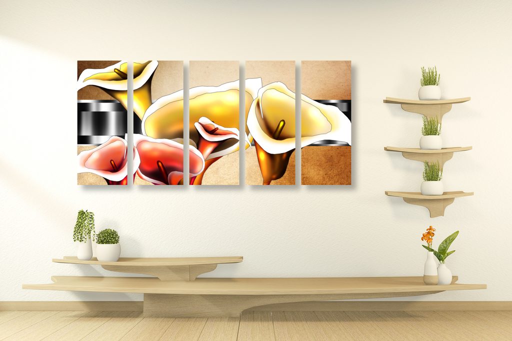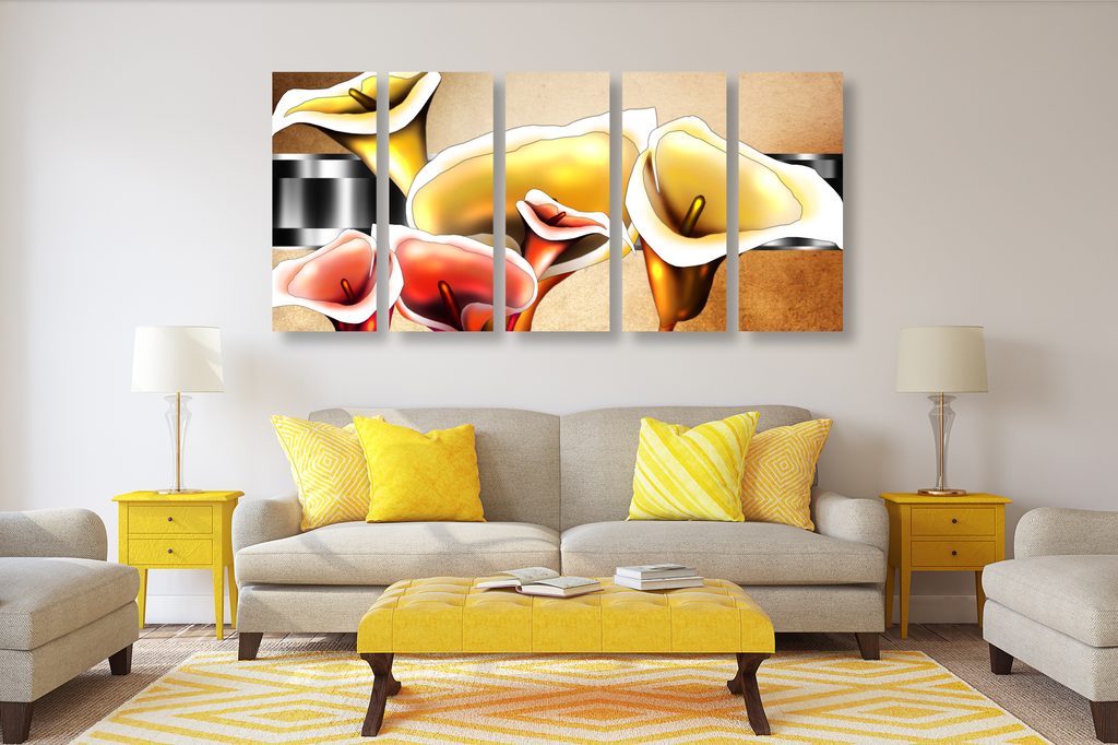 5-dielny obraz nádherne kvety v červenobielom prevedení