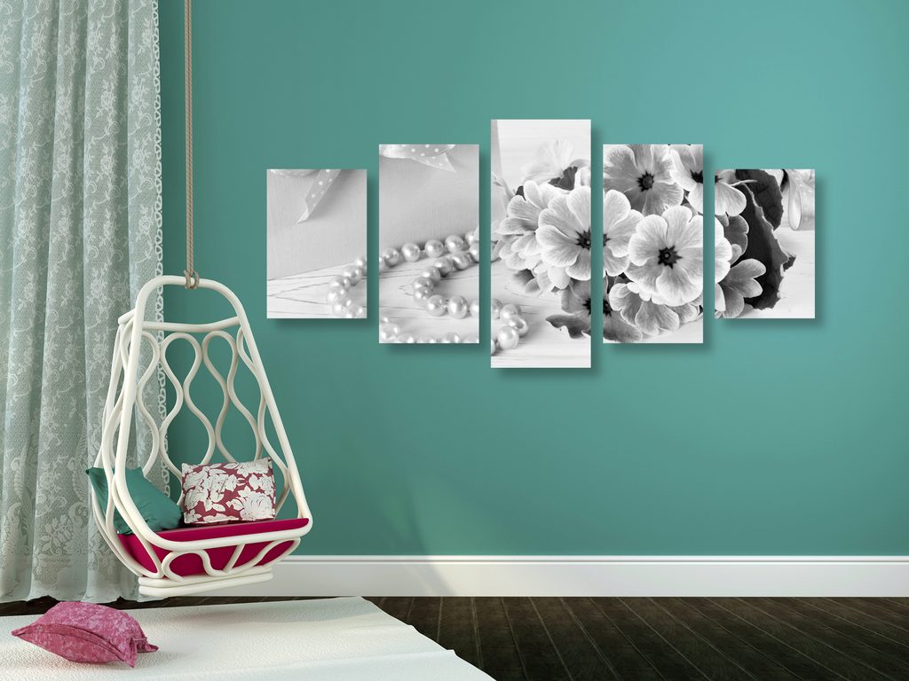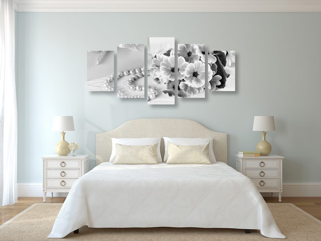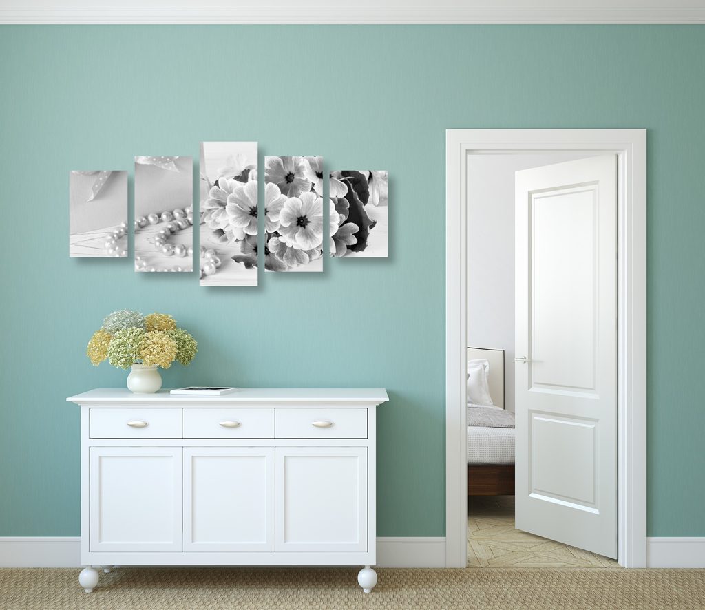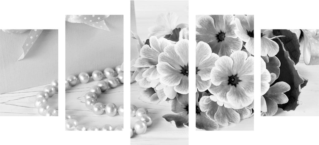 5-dielny obraz luxusné zátišie v čiernobielom prevedení