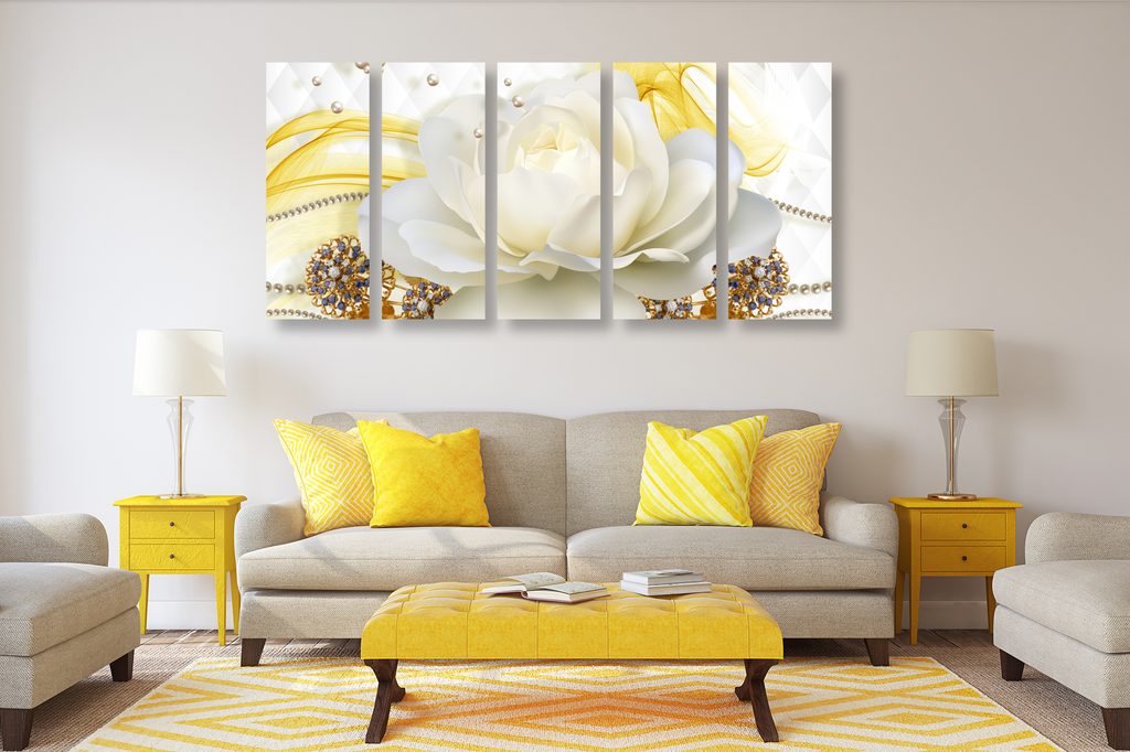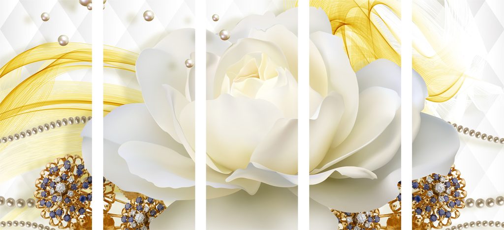 5-dielny obraz luxusný kvet s perlami