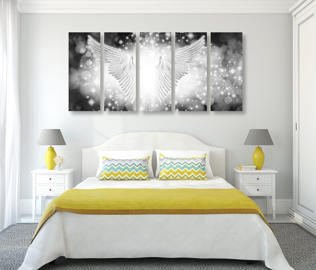 5-dielny obraz magické krídla v čiernobielom prevedení