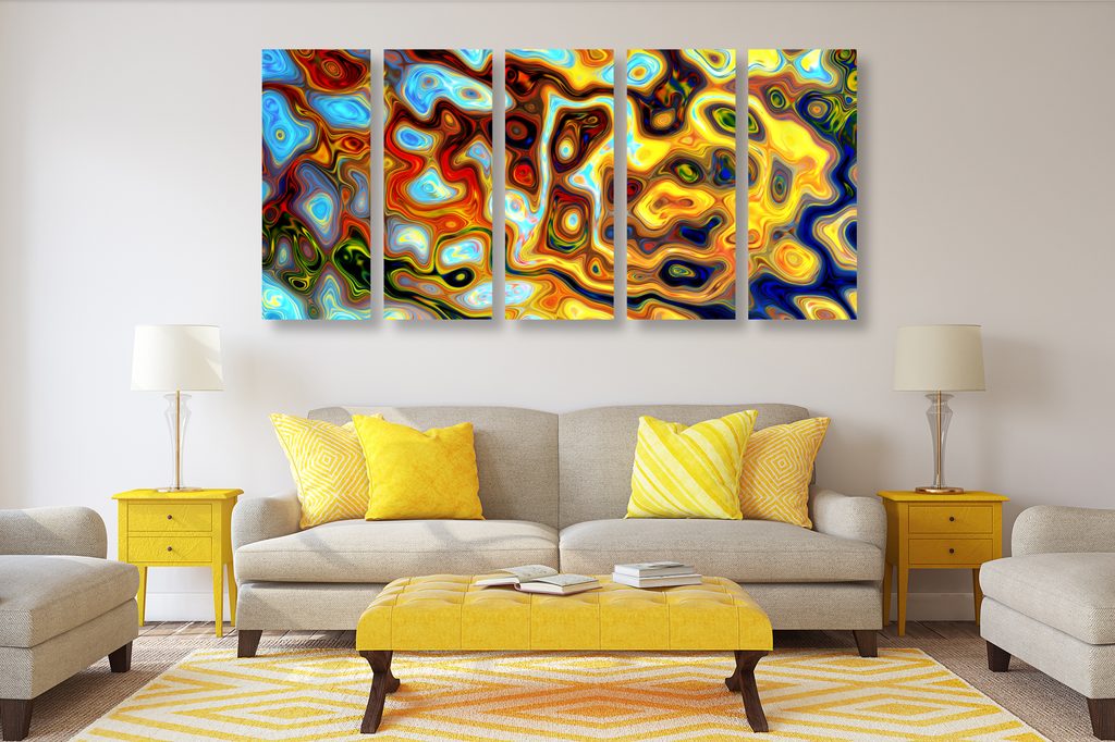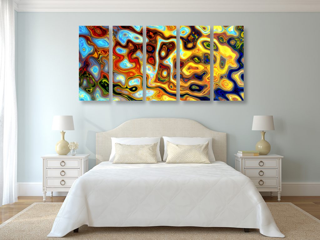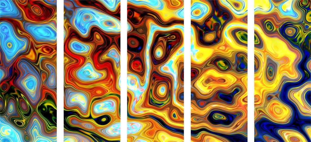 5-dielny obraz kvety v abstraktnom neónovom prevedení