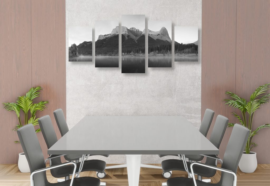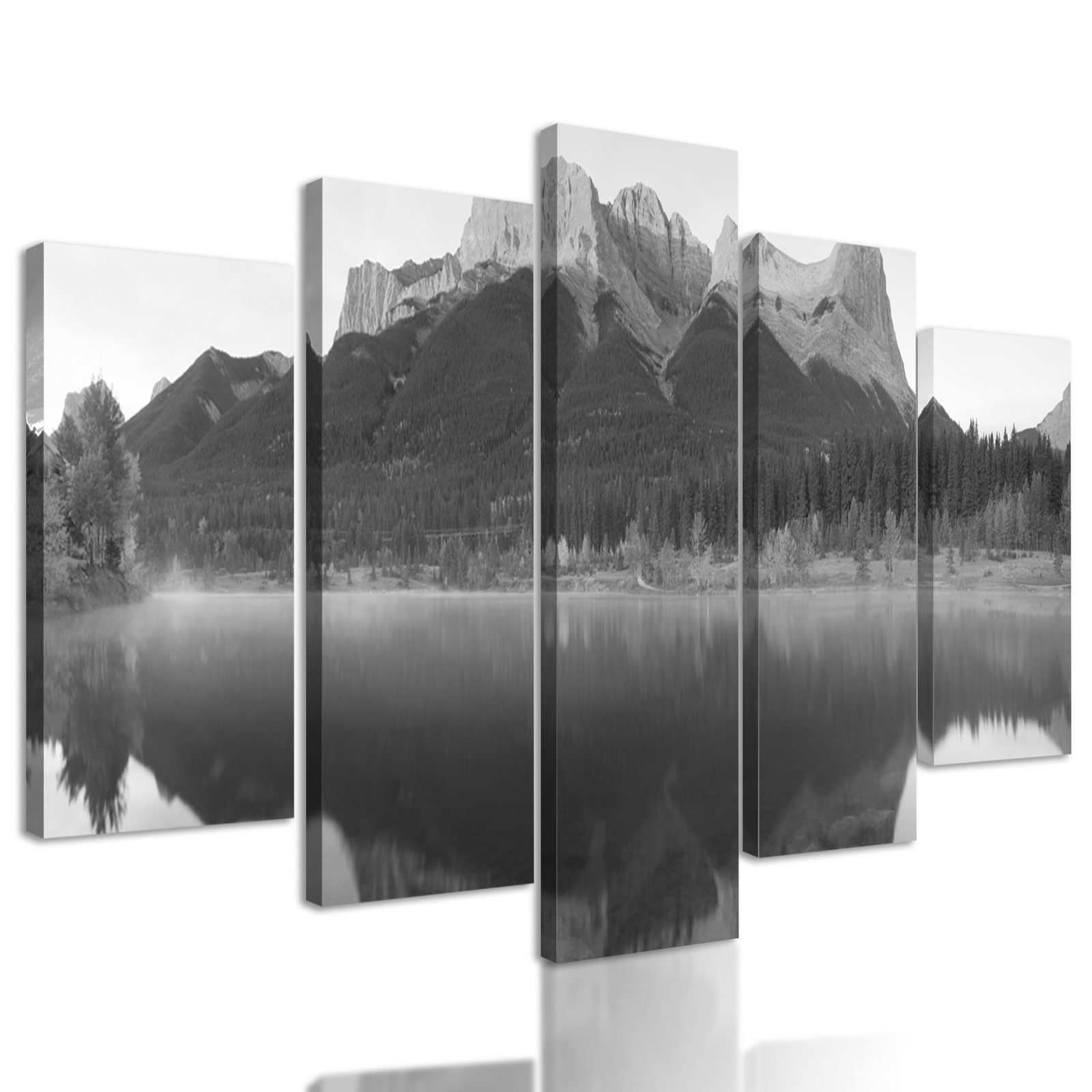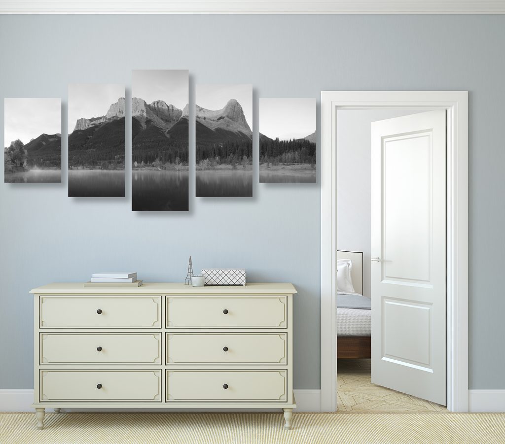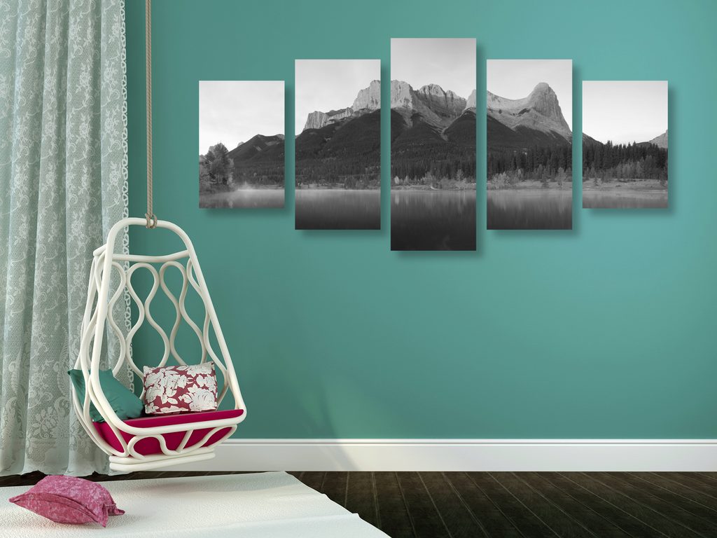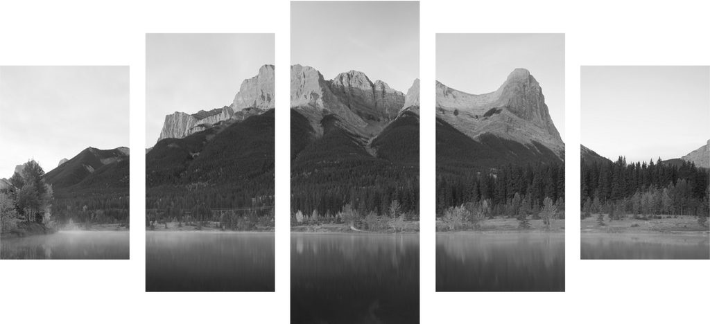 5-dielny obraz majestátna hora v čiernobielom prevedení