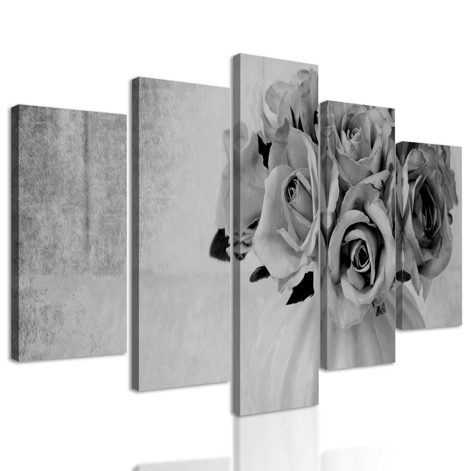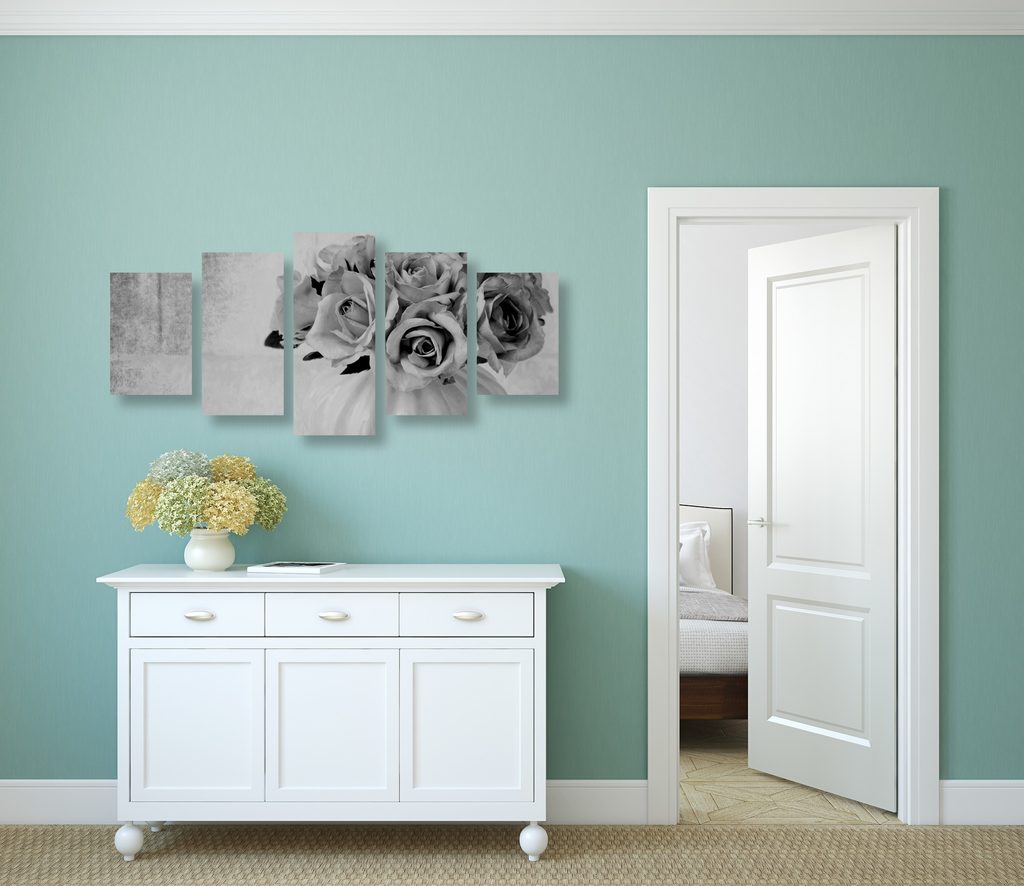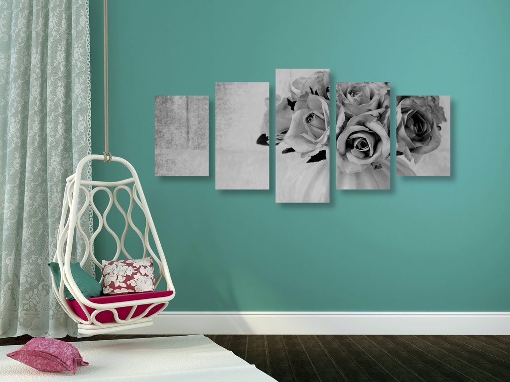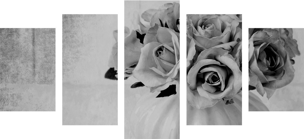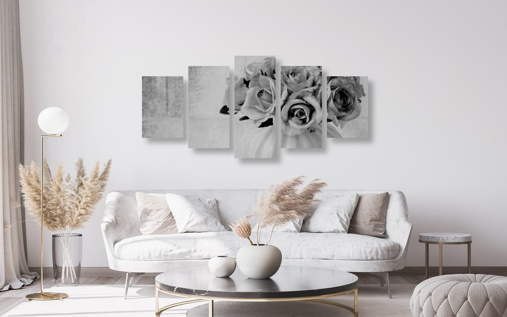 5-dielny obraz malé ružičky v čiernobielom prevedení