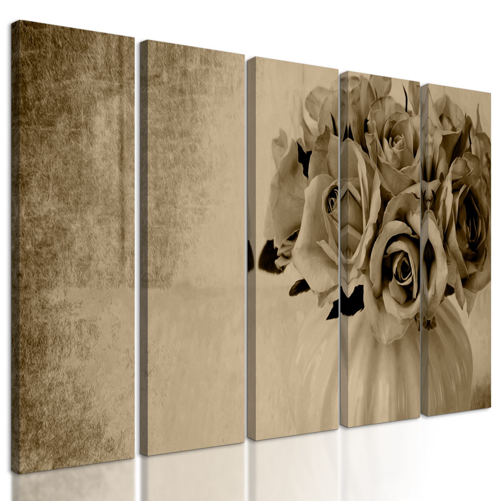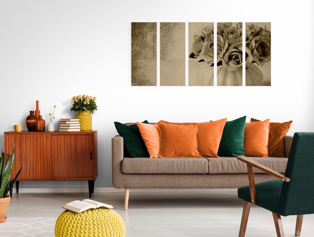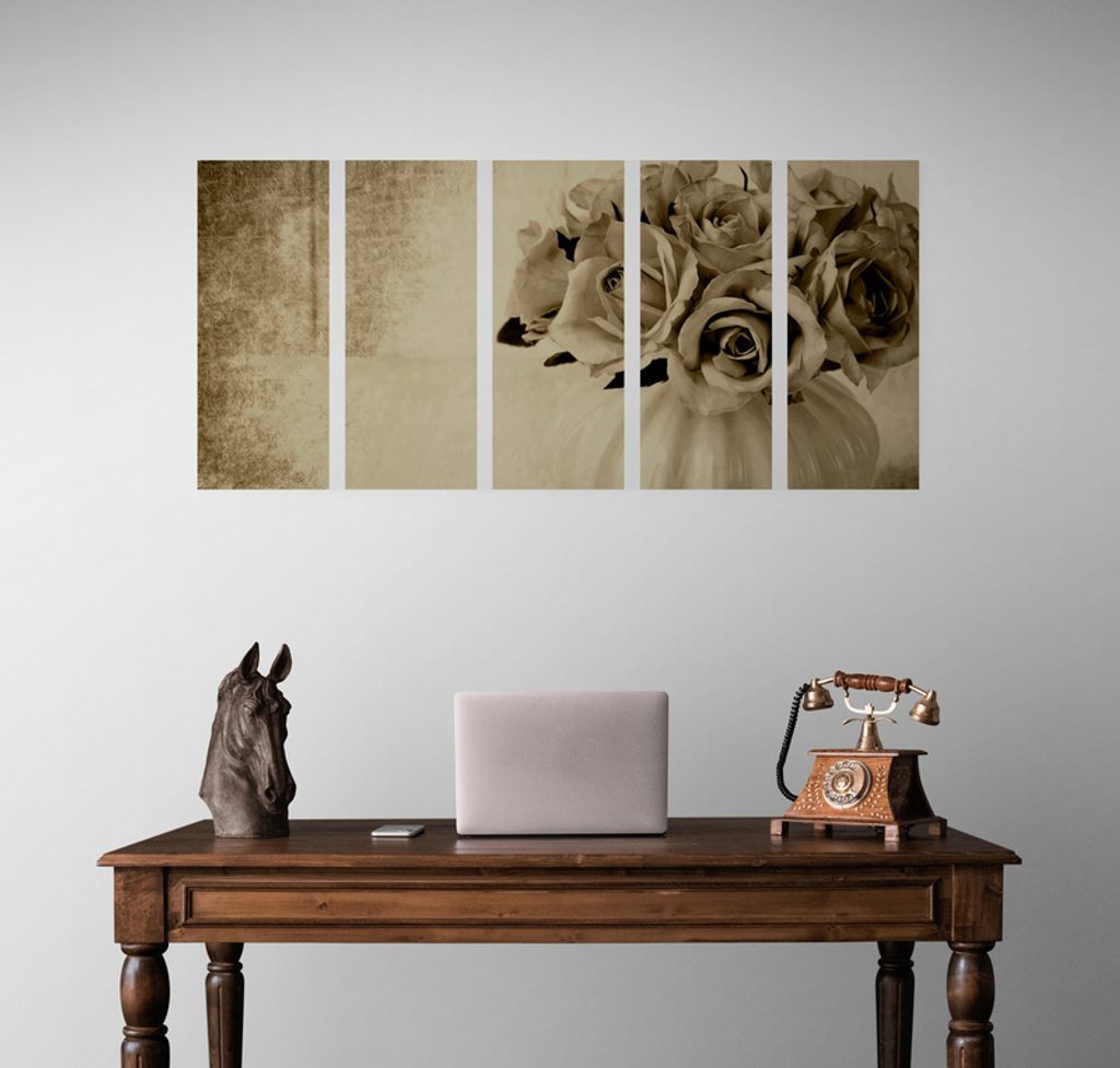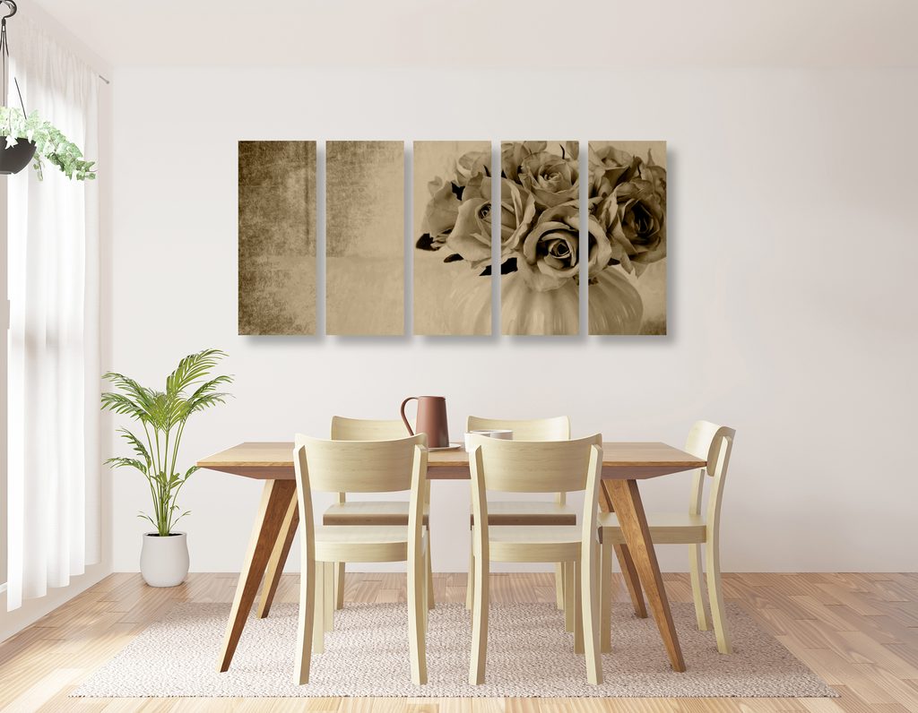 5-dielny obraz malé ružičky v sépiovom prevedení