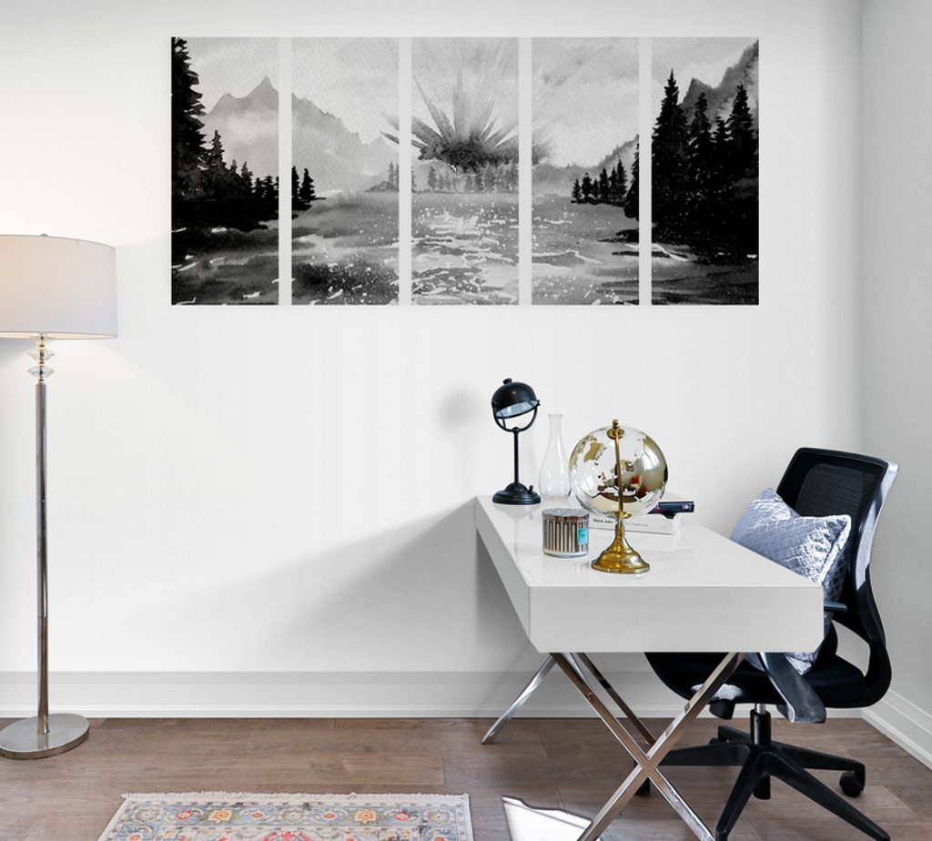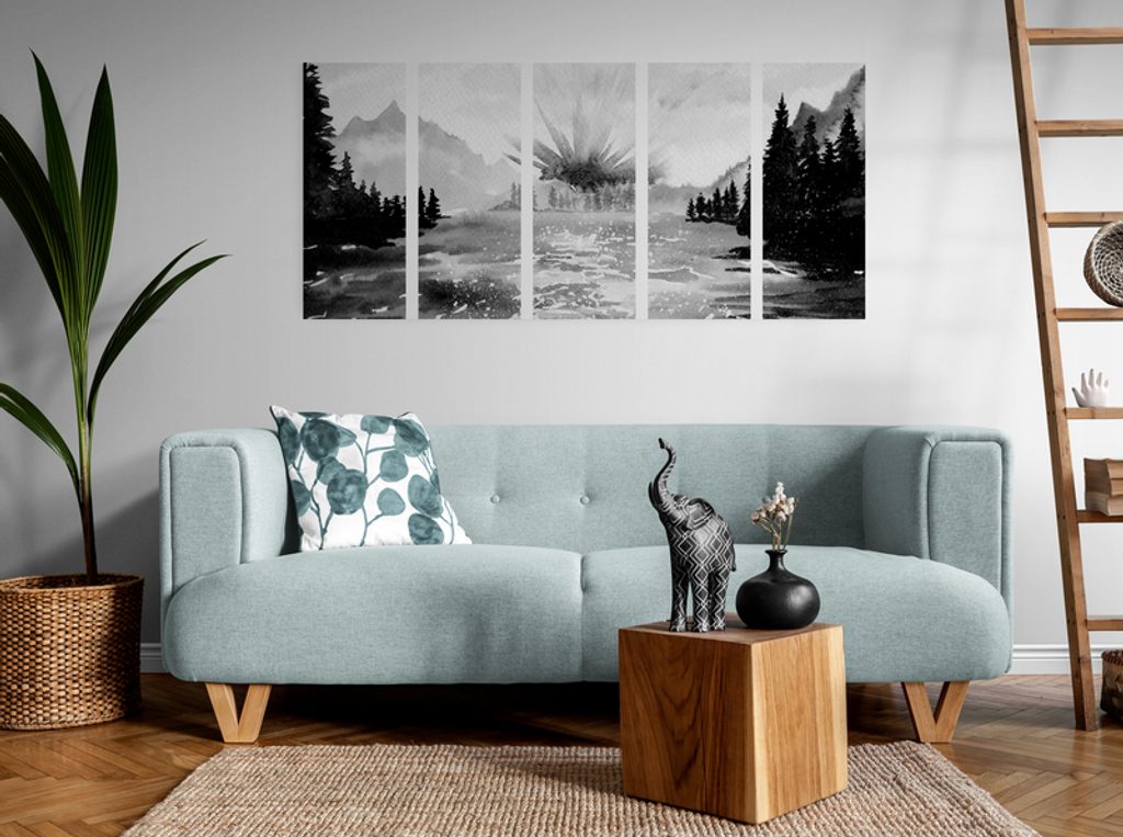 5-dielny obraz krásy prírody v čiernobielom prevedení