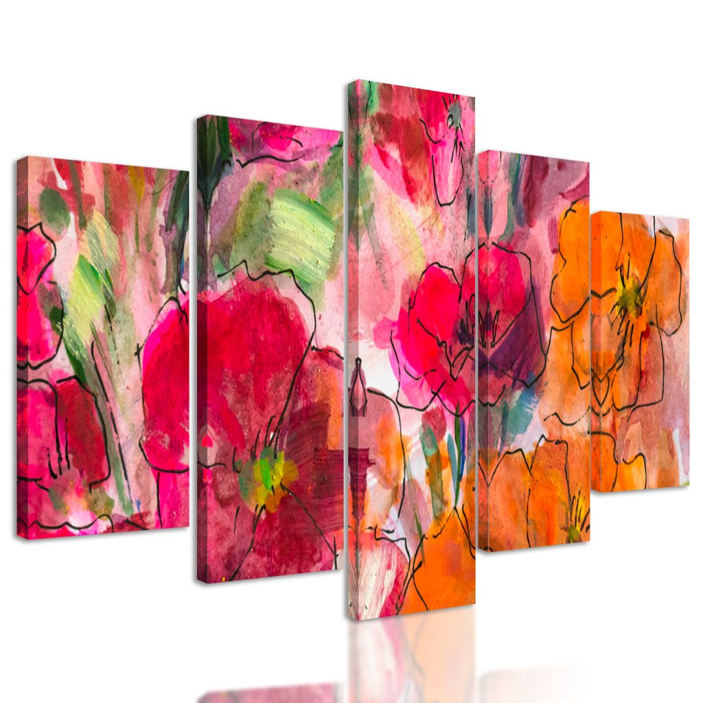 5-dielny obraz maľované maky