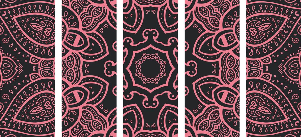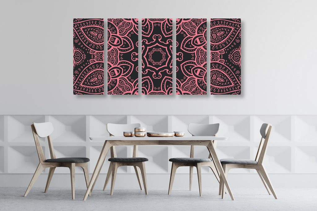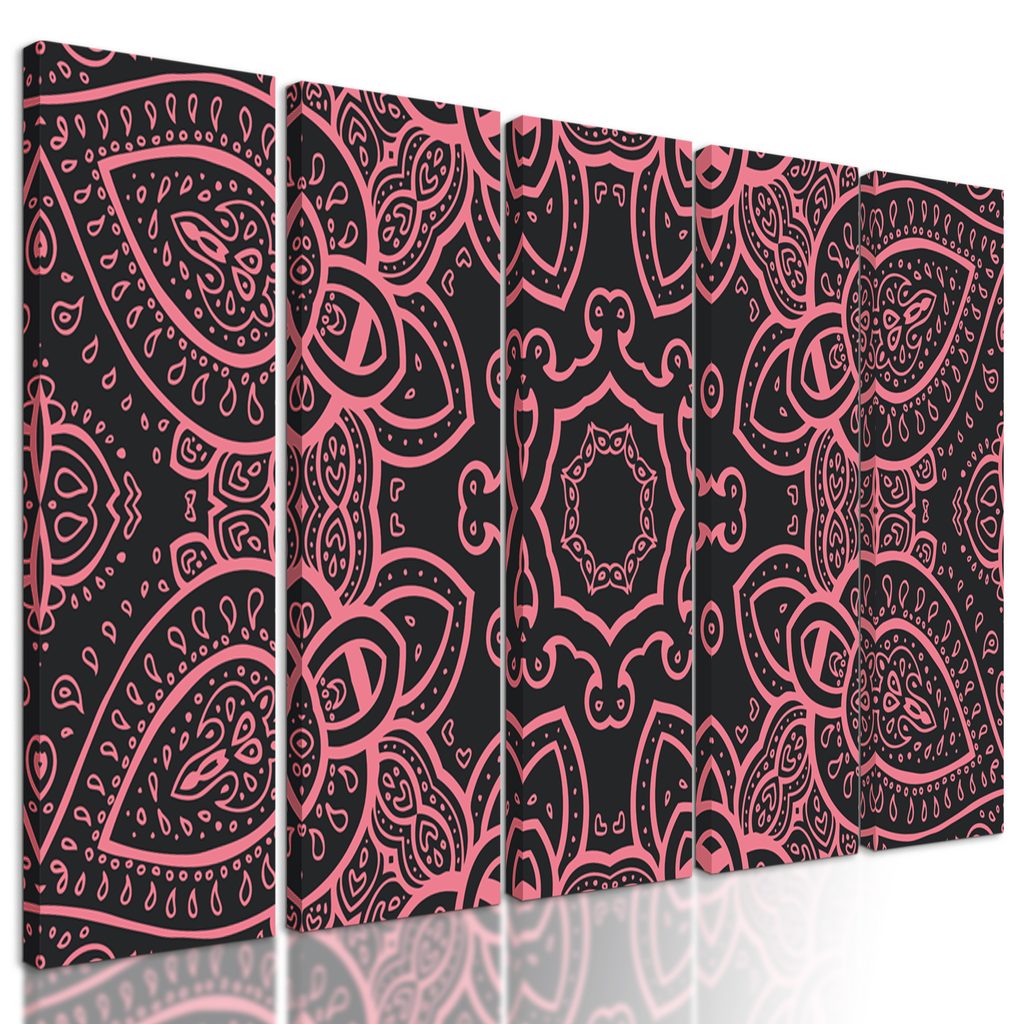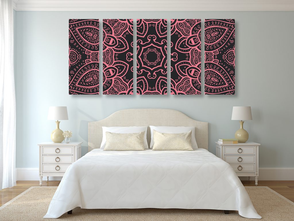 5-dielny obraz Mandala v indickom štýle v ružovom prevedení