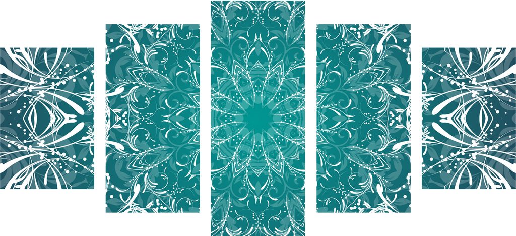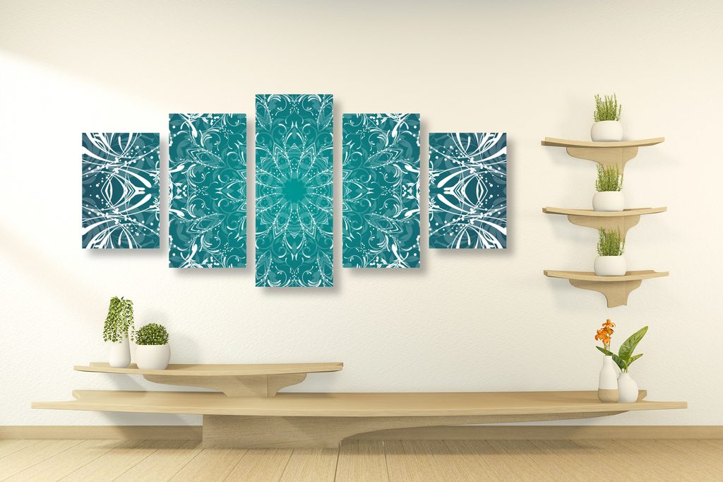 5-dielny obraz Mandala v modro-zelenom prevedení