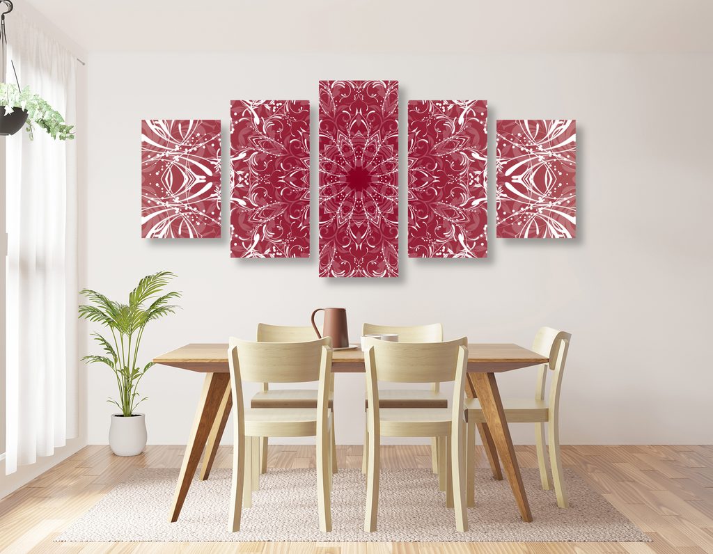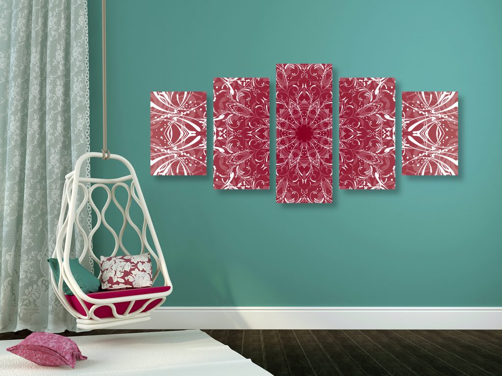 5-dielny obraz Mandala v ružovom prevedení