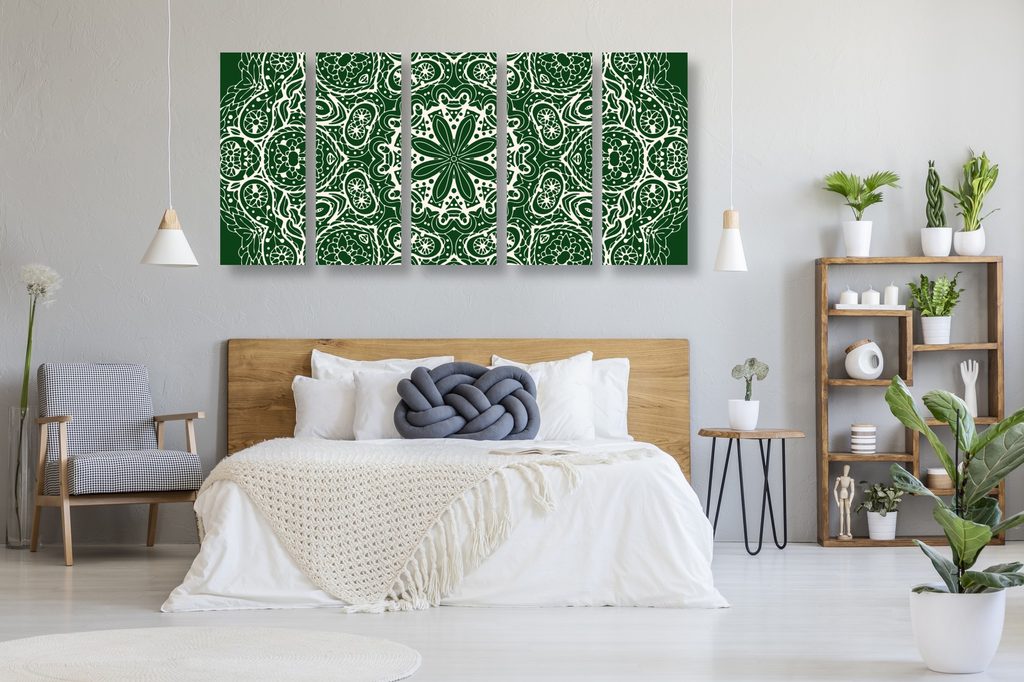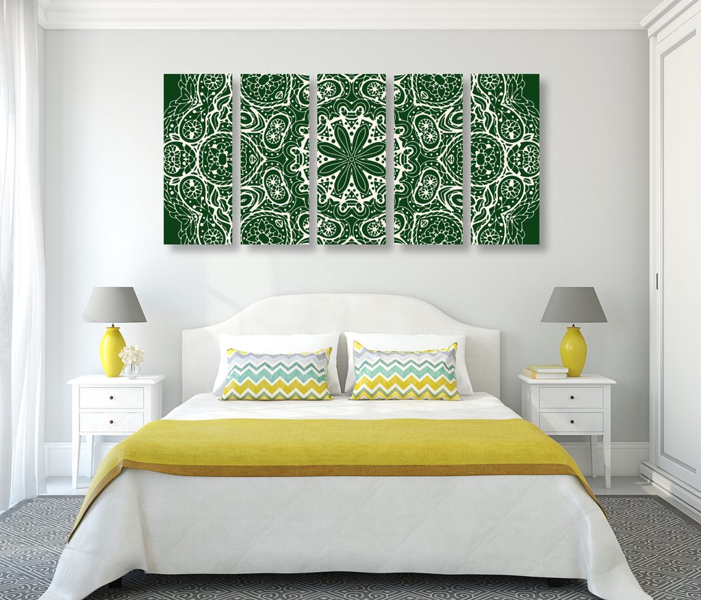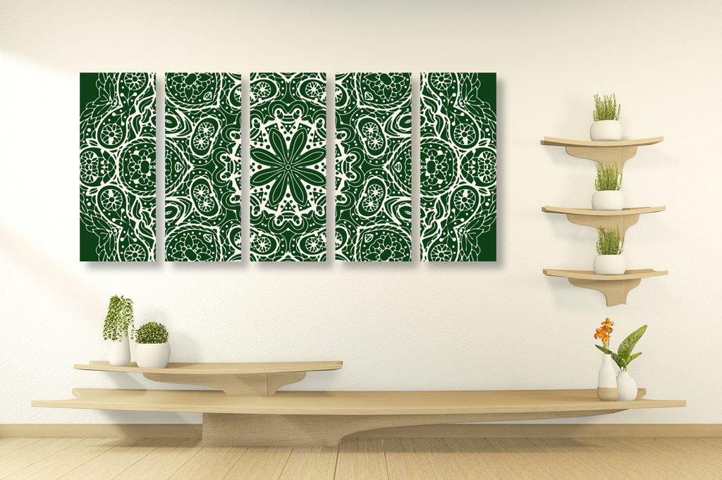 5-dielny obraz Mandala v zelenom štýle
