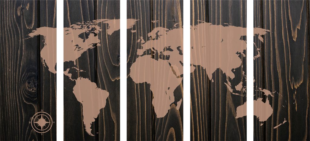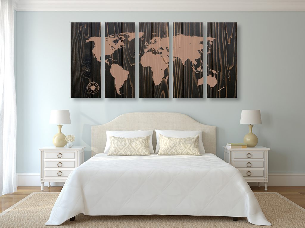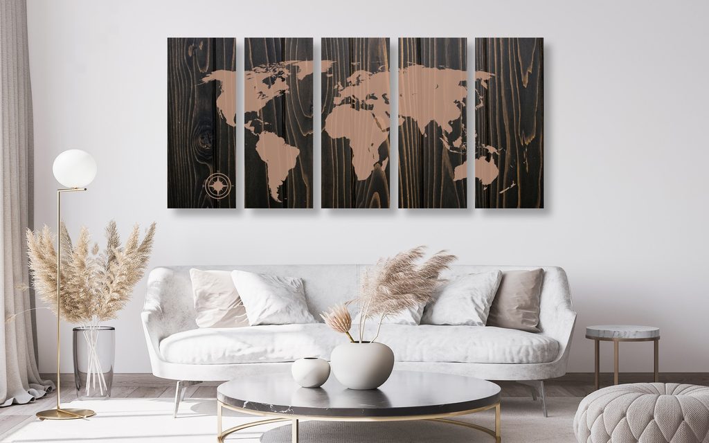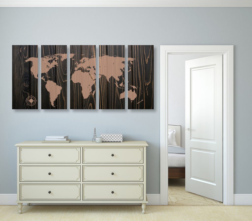 5-dielny obraz mapa sveta na dreve v luxusnom prevedení