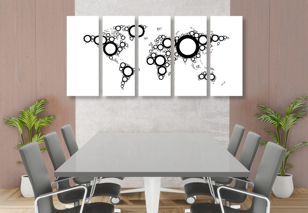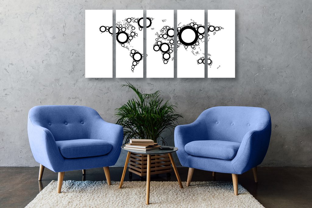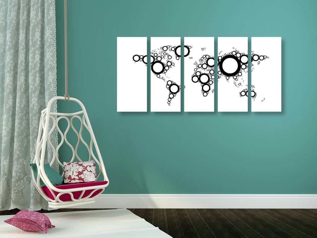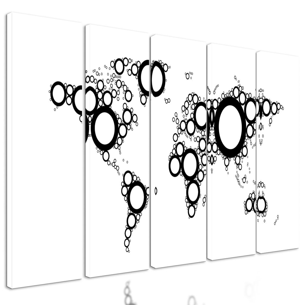 5-dielny obraz mapa sveta tvorená kružnicami